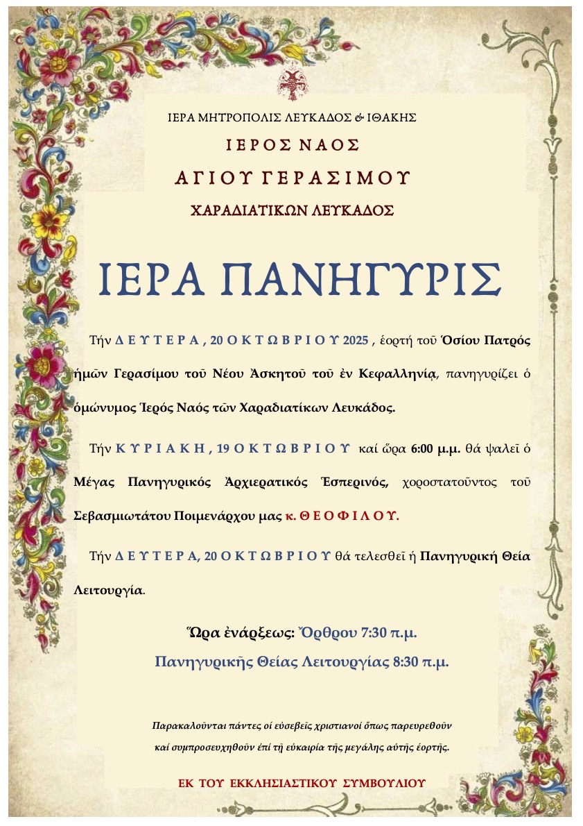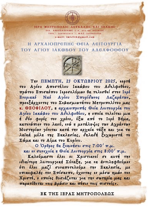 Διεύθυνση: Ιερά Μητρόπολη Λευκάδος και Ιθάκης,