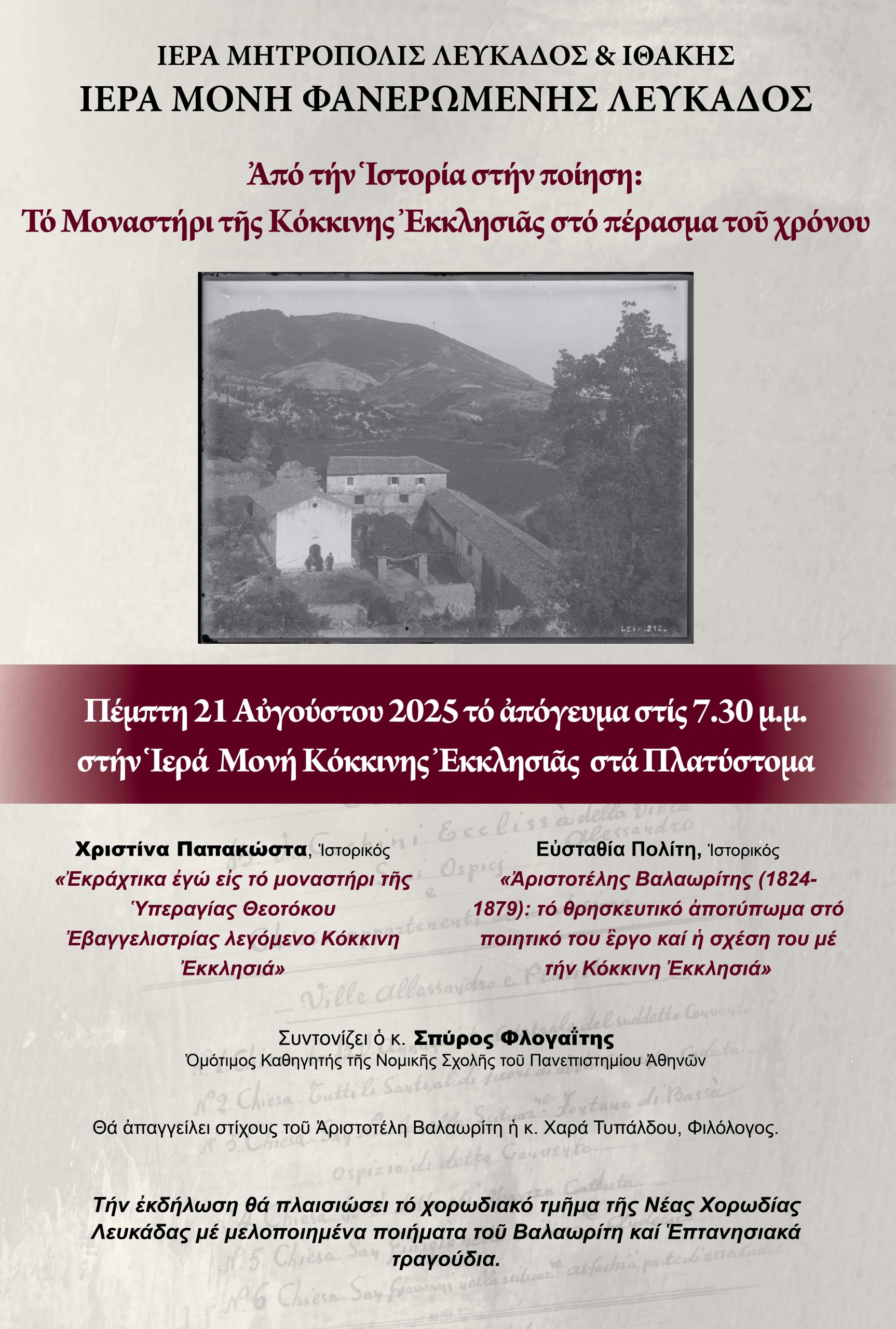 Ακολουθεί πρόσκληση εκδήλωσης Ιεράς Μονής Κόκκινης Εκκλησιάς Πλατυστόμων Λευκάδος με θέμα ¨Από την Ιστορία στην