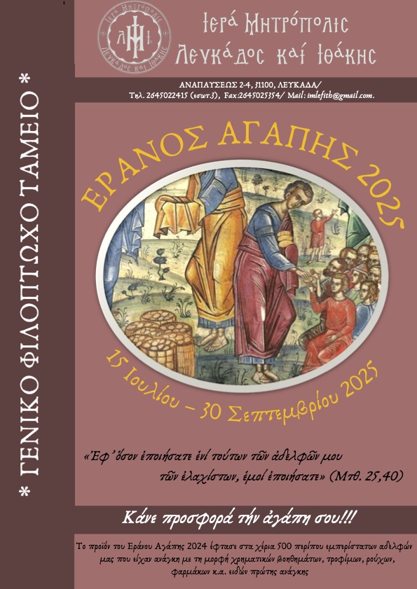 Ακολουθεί η Εγκύκλιος καθώς και η αφίσα - ανακοίνωση του Εράνου Αγάπης για το τρέχον
