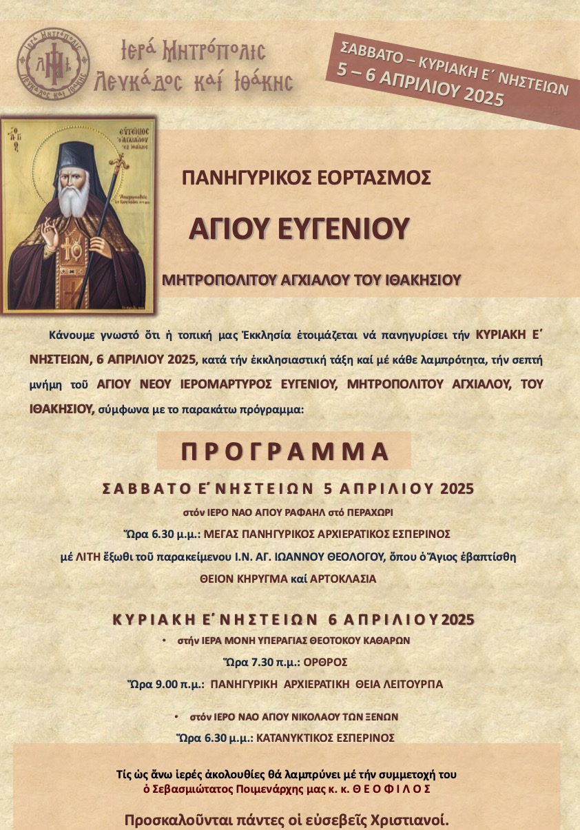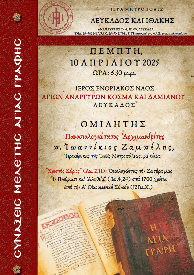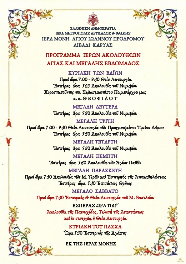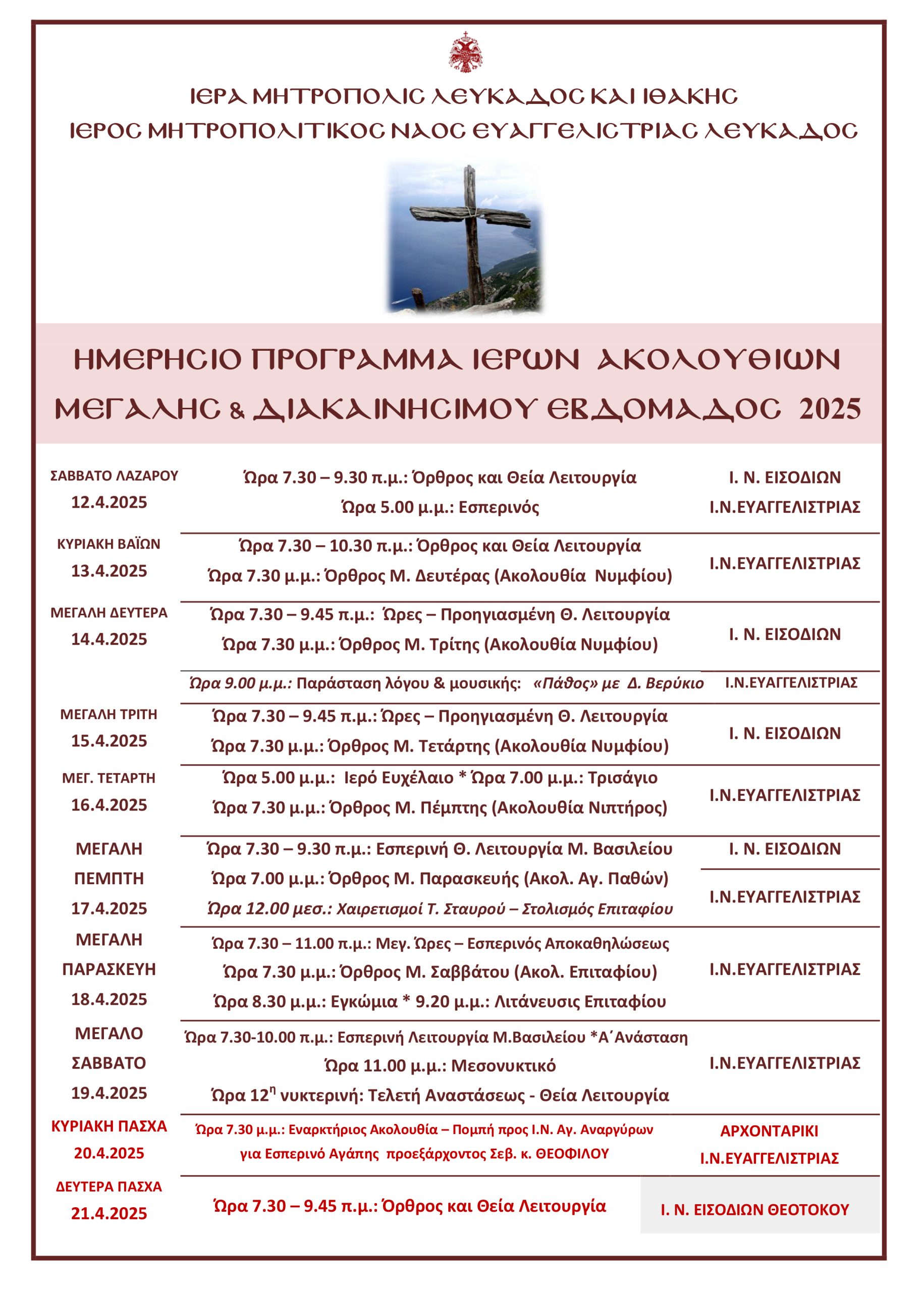 ΙΕΡΑ ΜΗΤΡΟΠΟΛΙΣ ΛΕΥΚΑΔΟΣ ΚΑΙ ΙΘΑΚΗΣ ΙΕΡΟΣ ΜΗΤΡΟΠΟΛΙΤΙΚΟΣ ΝΑΟΣ ΕΥΑΓΓΕΛΙΣΤΡΙΑΣ ΛΕΥΚΑΔΟΣ ΗΜΕΡΗΣΙΟ ΠΡΟΓΡΑΜΜΑ ΙΕΡΩΝ ΑΚΟΛΟΥΘΙΩΝ ΜΕΓΑΛΗΣ