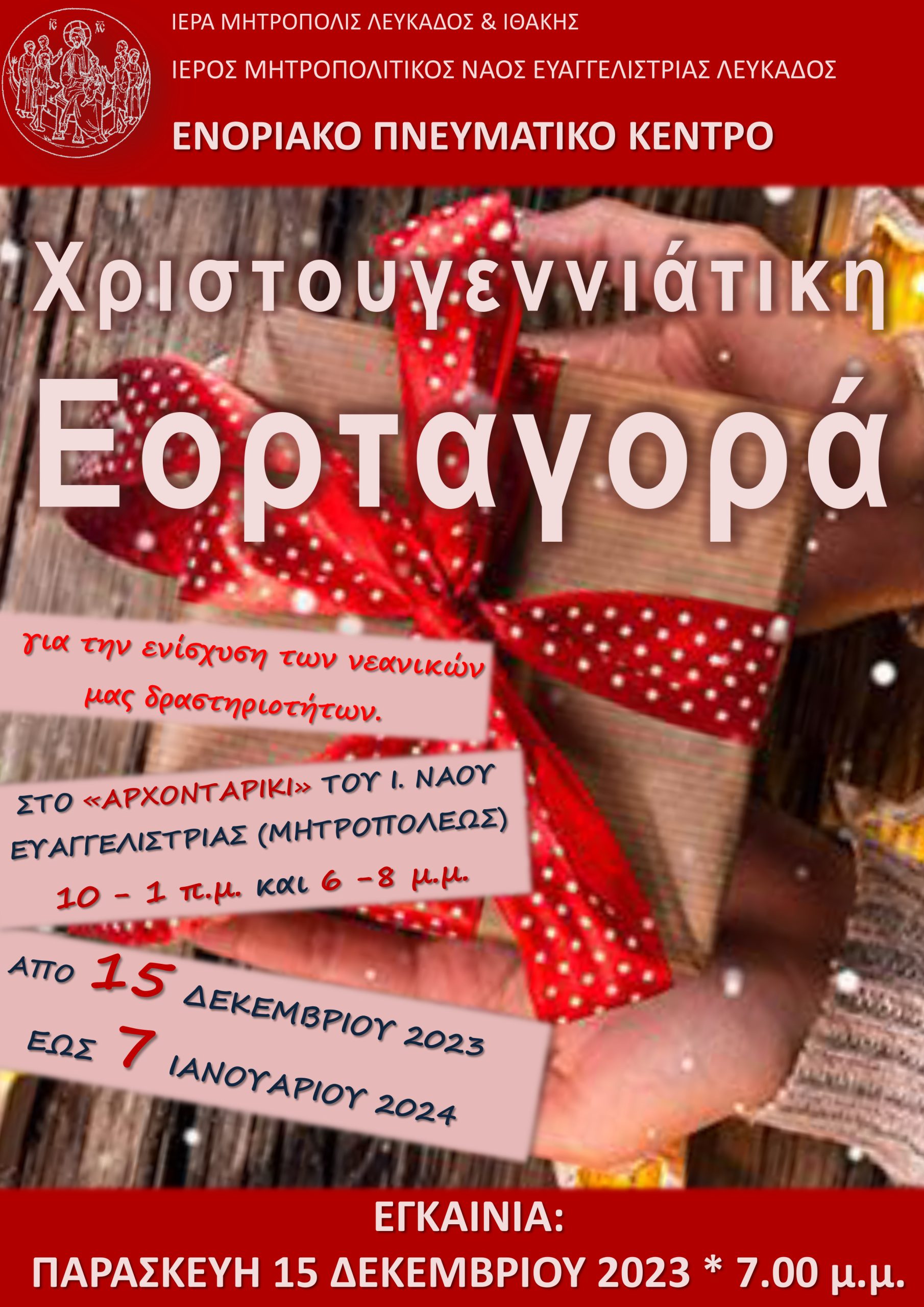 Πραγματοποιήθηκε το απόγευμα της Κυριακής στην αίθουσα της ΓΕΧΑ Λευκάδος Χριστουγεννιάτικη εορτή με ομιλητή τον Πανοσιολογιώτατο Αρχιμανδρίτη π. Νικηφόρο Ασπρογέρακα.