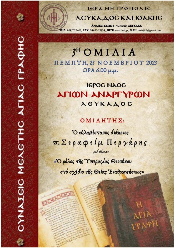 Την Κυριακή, 26 Νοεμβρίου 2023 και ώρα 6.00 μ.μ. θα πραγματοποιηθεί, με την ευλογία του