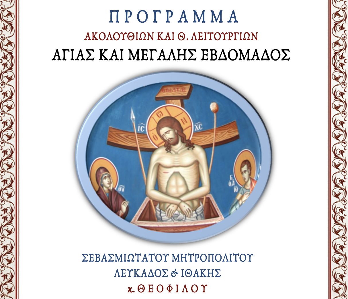 Ακολουθεί πρόγραμμα Ιερών Ακολουθιών και Θείων Λειτουργιών Αγίας και Μ. Εβδομάδος 2023 Σεβασμιωτάτου Μητροπολίτου Λευκάδος