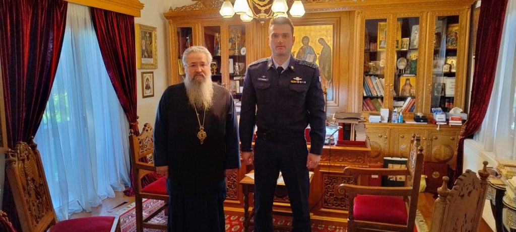 Το πρωί της Παρασκευής, 7 Μαρτίου 2025 ο Σεβασμιώτατος Ποιμενάρχης μας υποδέχτηκε στο Επισκοπείο τον νέο Διοικητή της 4ης ΜΣΕΠ Επισμηναγό (EA) κ. Βασίλειο Στασινό. Στη συζήτηση που ακολούθησε ο Σεβασμιώτατος μεταξύ άλλων ευχήθηκε στον νέο Διοικητή καλή δύναμη και κάθε ευλογία στο έργο του ενώ παράλληλα τέθηκαν οι βάσεις για την συνέχιση της εποικοδομητικής συνεργασίας μεταξύ της Ιεράς Μητροπόλεώς μας και της Αεροπορικής Βάσεως του νησιού.