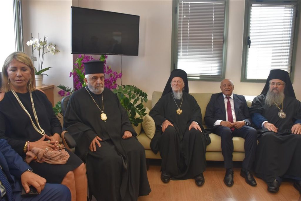 Αργότερα, στο Καθολικό της Μονής του Τιμίου Προδρόμου, με τις εξαιρετικές αγιογραφίες, τον Παναγιώτατο καλωσόρισαν με θερμούς λόγους ο επιχώριος Μητροπολίτης, καθώς και ο Ηγούμενος Πανοσιολ. Αρχιμανδρίτης κ. Χριστοφόρος, οι οποίοι, μεταξύ άλλων, αναφέρθηκαν στην προσπάθεια διασώσεως και αναστηλώσεως του ιστορικού Μοναστηριού. Ο Παναγιώτατος, στη σύντομη αντιφώνησή του, εξέφρασε για άλλη μία φορά τη χαρά του που επισκέπτεται την Ι. Μητρόπολη Λευκάδος και Ιθάκης και ευχαρίστησε για τις θερμές εκδηλώσεις σεβασμού και τιμής προς τη Μητέρα Εκκλησία της Κωνσταντινουπόλεως και τον Προκαθήμενο Αυτής. Επακολούθησε επίσημο δείπνο που παρετέθη προς τιμήν του Παναγιωτάτου στο Αρχονταρίκι της Μονής.