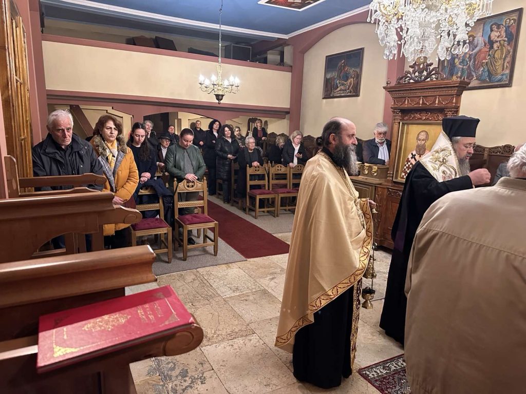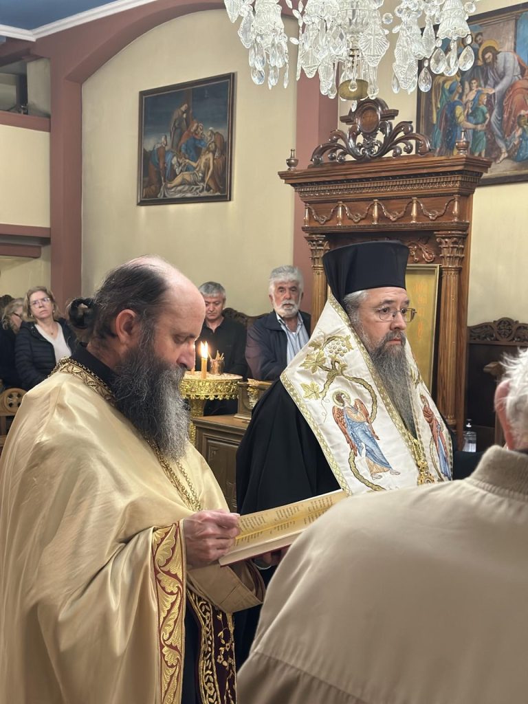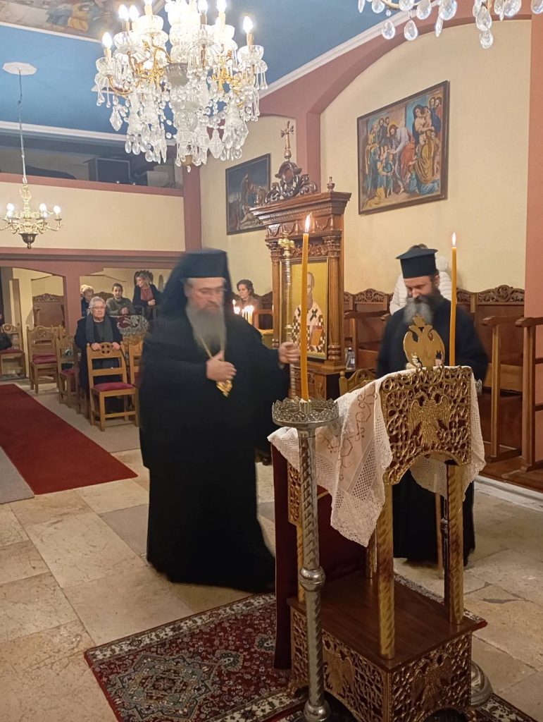 Εψάλη την Παρασκευή, 28 Μαρτίου 2025 και ώρα 7:00 μ.μ. στον Ιερό Ενοριακό Ναό Αγίου Αθανασίου Απολπαίνης Λευκάδος η Ακολουθία των Δ’ Χαιρετισμών στην Υπεραγία Θεοτόκο, χοροστατούντος του Σεβασμιωτάτου Ποιμενάρχου μας κ. Θεοφίλου. Τον Σεβασμιώτατο πλαισίωσε ο εφημέριος της Ενορίας, Αιδεσιμολογιώτατος Πρωτοπρεσβύτερος π. Παναγιώτης Ζαβιτσάνος. Τον θείο λόγο κήρυξε ο Σεβασμιώτατος Μητροπολίτης μας ο οποίος μίλησε μεταξύ άλλων για το βαθύτερο νόημα της Δ᾽ Στάσης των Χαιρετισμών στην Παναγία μας.