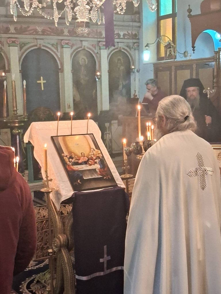 Τελέσθηκε το απόγευμα της Μεγάλης Τετάρτης και ώρα 6.45 μ.μ. στον Ιερό Ναό Αγίου Σπυρίδωνος, στην συνοικία ¨Παλάτια¨Βαθέος Ιθάκης η Ακολουθία του Μυστικού Δείπνου, χοροστατούντος του Σεβασμιωτάτου Ποιμενάρχου μας κ. Θεοφίλου, πλαισιωμένου από τον εφημέριο Αιδεσιμολογιώτατο Πρωτοπρεσβύτερο π. Θεοδόσιο Δενδρινό και τον ευλαβέστατο διάκονο π. Καλλίνικο Καρανθίμου.