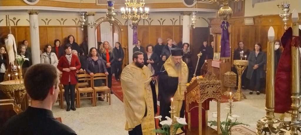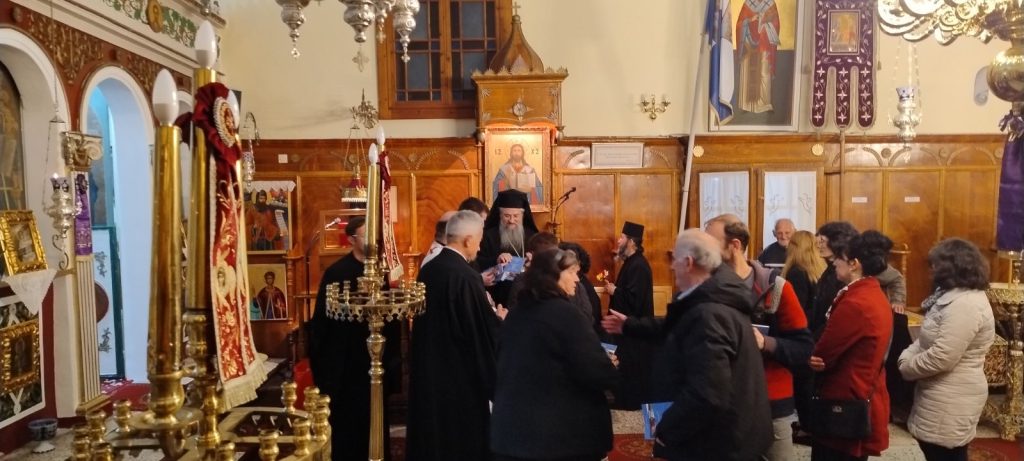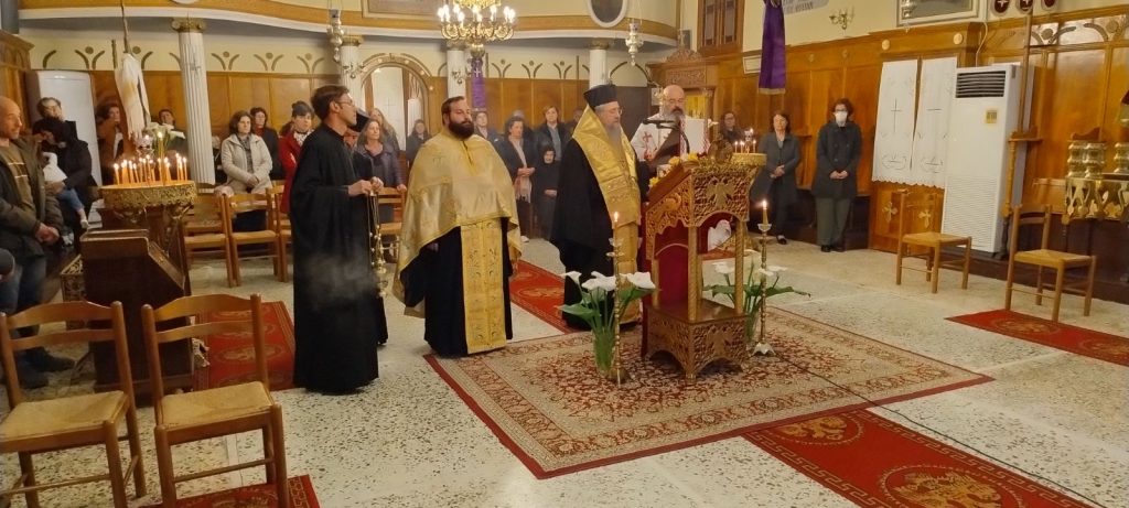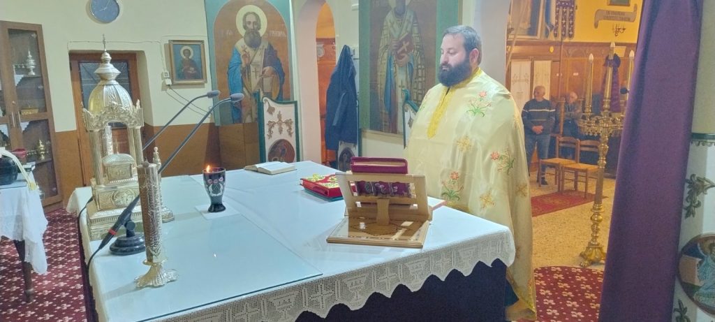 Εψάλη την Παρασκευή, 14 Μαρτίου 2025 και ώρα 7:00 μ.μ. στον Ιερό Ενοριακό Ναό Κοιμήσεως Θεοτόκου στη Βασιλική Λευκάδος η Ακολουθία των Β’ Χαιρετισμών στην Υπεραγία Θεοτόκο, χοροστατούντος του Σεβασμιωτάτου Ποιμενάρχου μας κ. Θεοφίλου. Τον θείο λόγο κήρυξε ο Σεβασμιώτατος ο οποίος μίλησε μεταξύ άλλων για το βαθύτερο νόημα της Β᾽ Στάσης των Χαιρετισμών στην Παναγία μας. Κατά την διάρκεια της κατανυκτικής Ιεράς Ακολουθίας, ο Σεβασμιώτατος Μητροπολίτης μας χειροθέτησε αναγνώστη τον κ. Κωνσταντίνο Πολίτη, ο οποίος επί σειρά ετών διακονεί ως εκκλησιαστικός επίτροπος και ιεροψάλτης τόσο στην Ενορία της γειτονικής Κονταραίνης, όσο και στο ιερό αναλόγιο της Ενορίας Βασιλικής Λευκάδος.