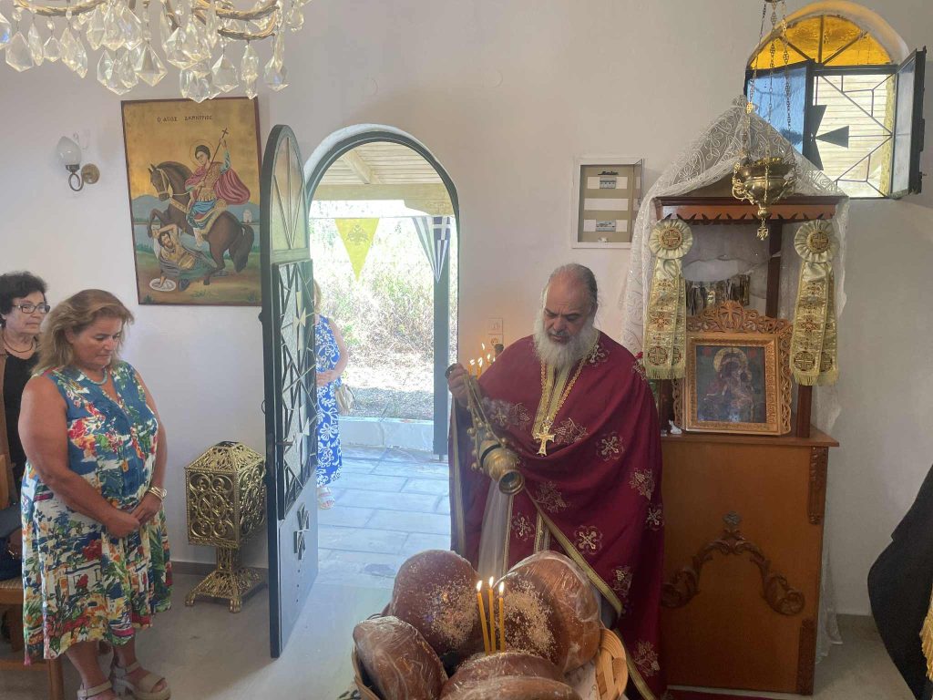 Με την ευκαιρία της Αποδόσεως της Θεομητορικής εορτής της Κοιμήσεως της Υπεραγίας Θεοτόκου εόρτασε με κάθε μεγαλοπρέπεια το διήμερο της Παρασκευής, 22 και Σαββάτου, 23 Αυγούστου 2025 ο Ιερός Ναός της Παναγίας της Ελεούσης στην περιοχή «Κέλπεσι» της νήσου Καλάμου. Το εσπέρας της Παρασκευής και ώρα 8.00 μ.μ. εψάλη ο Μέγας Πανηγυρικός Εσπερινός μετ’ αρτοκλασίας, χοροστατούντος του Σεβασμιωτάτου Ποιμενάρχου μας κ. Θεοφίλου, ενώ την κυριώνυμο ημέρα, Σαββάτο, 23 Αυγούστου εψάλη ο Όρθρος και στη συνέχεια τελέσθηκε η Πανηγυρική Θεία Λειτουργία. Πριν το πέρας της Πανηγυρικής Θείας Λειτουργίας ο Σεβασμιώτατος Μητροπολίτης μας αναφέρθηκε μεταξύ άλλων στο πρόσωπο της Παναγίας μας και στη βαθύτερη σημασία του ρόλου της στο προαιώνιο σχέδιο του Θεού για την σωτηρία του ανθρώπου. Στην συνέχεια τέλεσε Τρισάγιο υπέρ αναπαύσεως των κτιτόρων του εορτάζοντος Ιερού Ναού. Δεν παρέλειψε τέλος να ευχαριστήσει τον Αιδεσιμολογιώτατο Πρωτοπρεσβύτερο π. Κωνσταντίνο Μητρόπουλο, Γενικό Αρχιερατικό Επίτροπο Καλαβρύτων και Ιερατικό Προϊστάμενο του Ιερού Μητροπολιτικού Ναού Κοιμήσεως της Θεοτόκου Καλαβρύτων, ο οποίος και τέλεσε τις Ιερές Ακολουθίες αλλά και όσους συμμετείχαν και συμπροσευχήθηκαν στις διήμερες λατρευτικές εκδηλώσεις ευχόμενος η Υπεραγία Θεοτόκος να σκεπάζει τον καθένα ξεχωριστά.