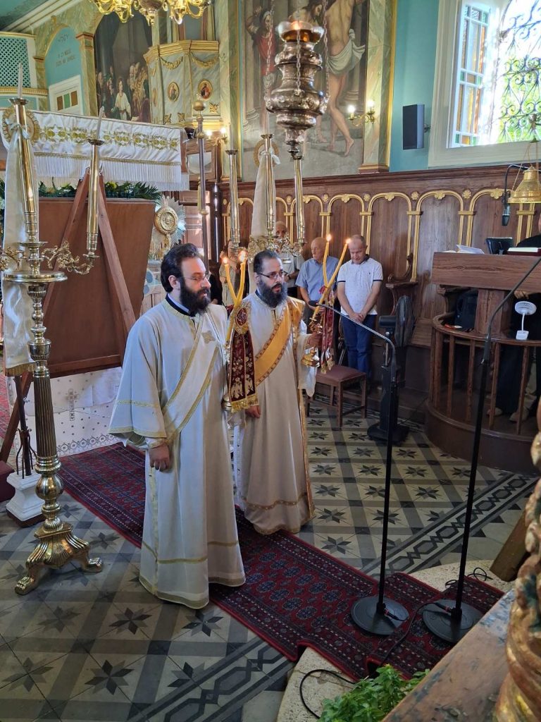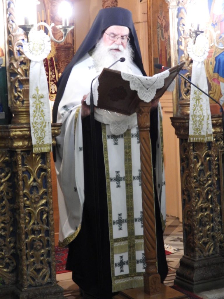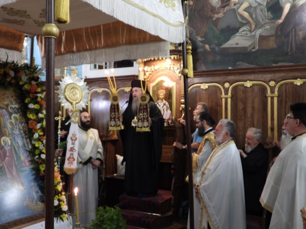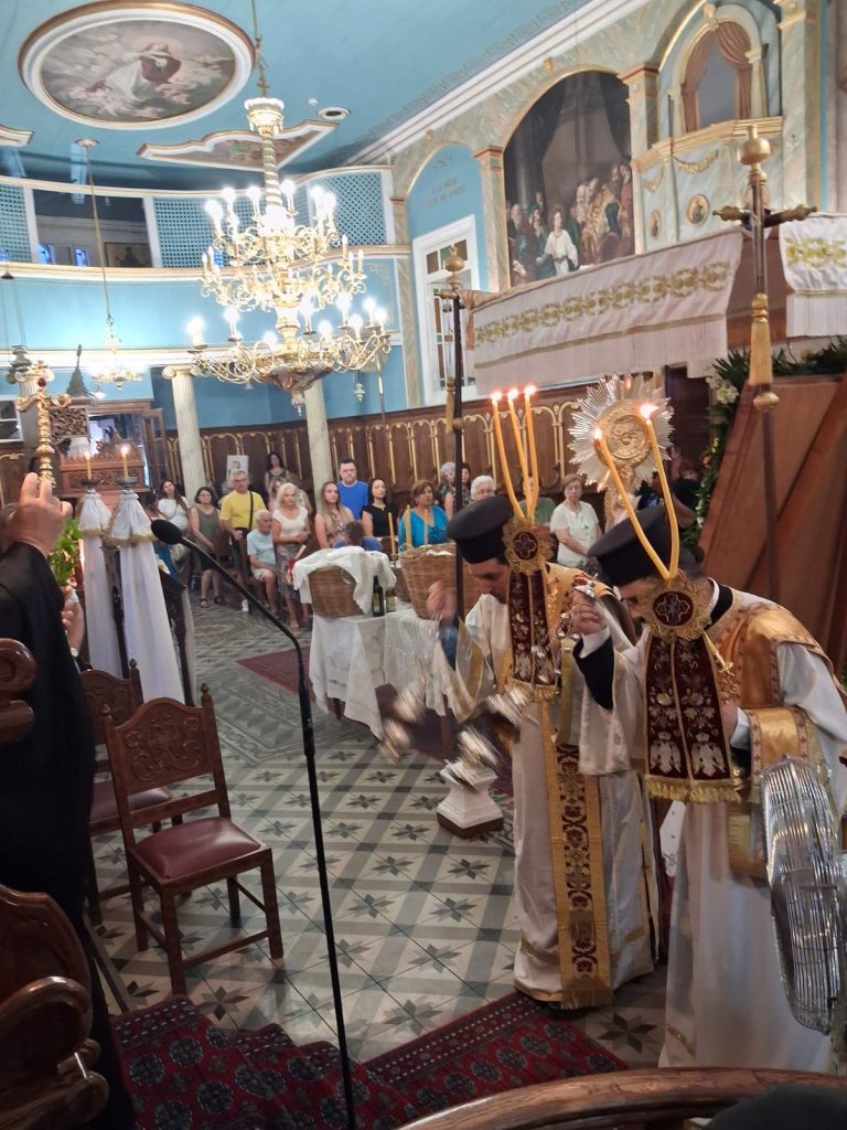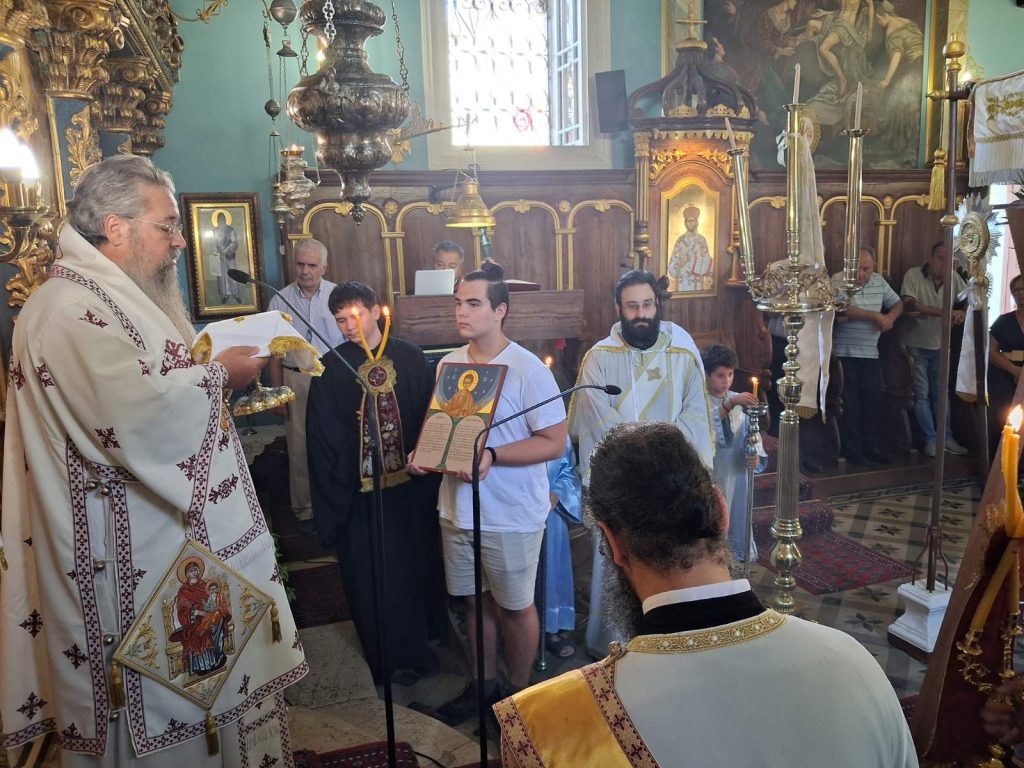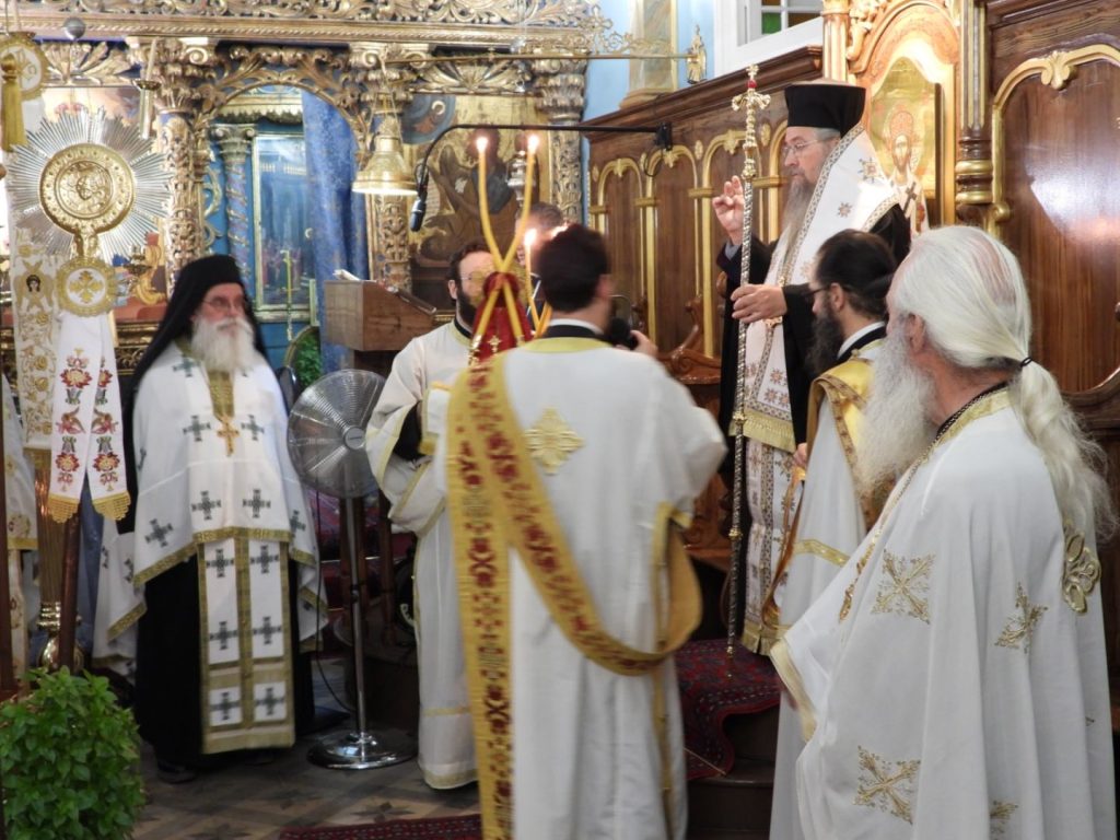 Το πρωί της Κυριακής, 17 Αυγούστου εψάλη η Ακολουθία του Όρθρου και στη συνέχεια τελέσθηκε Πανηγυρική Αρχιερατική Θεία Λειτουργία, προεξάρχοντος του Σεβασμιωτάτου Ποιμενάρχου μας κ. Θεοφίλου. Τον θείο λόγο κήρυξε ο Σεβασμιώτατος Μητροπολίτης μας λαμβάνοντας αφορμή από την Ευαγγελική περικοπή της ημέρας. Ο Σεβασμιωτάτος Ποιμενάρχης μας δεν παρέλειψε μεταξύ άλλων να μοιράσει το αντίδωρο και τον άρτο, ευχόμενος προσωπικά στον ευσεβή κλήρο και τον φιλόχριστο λαό έτη πολλά, καρποφόρα κι ευλογημένα κατ´άμφω