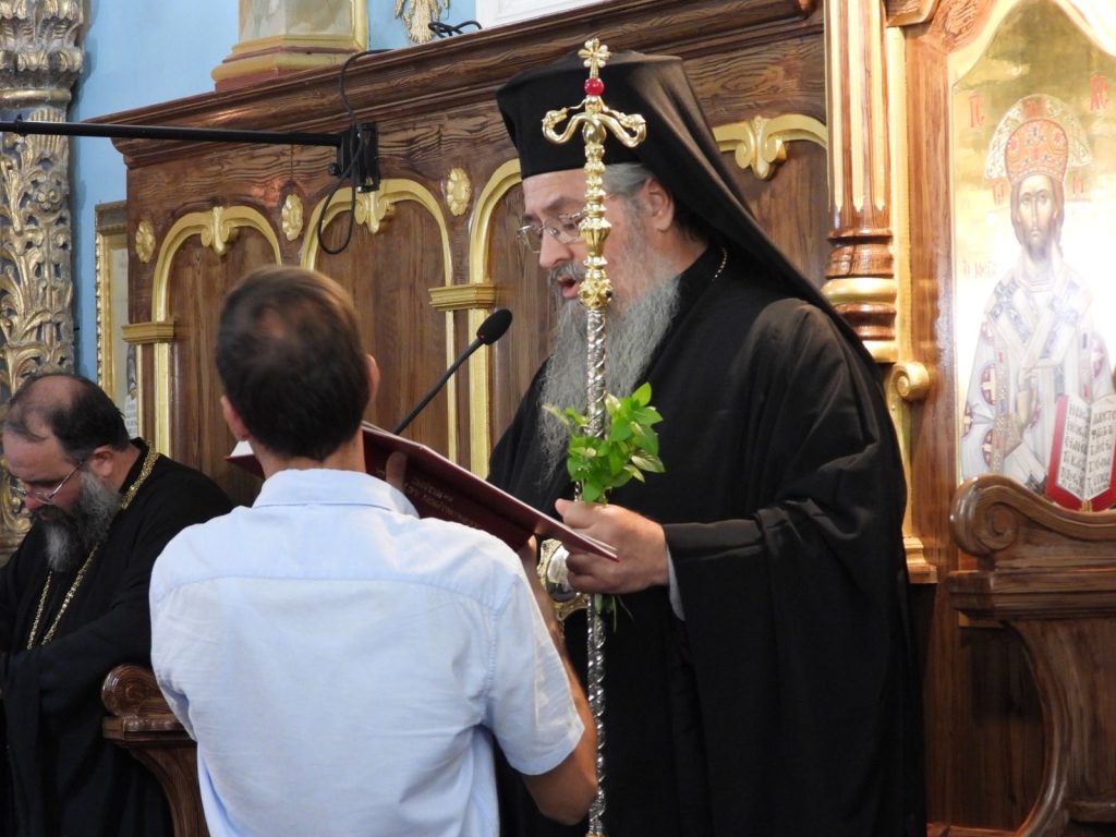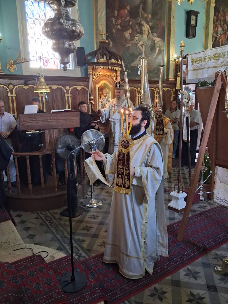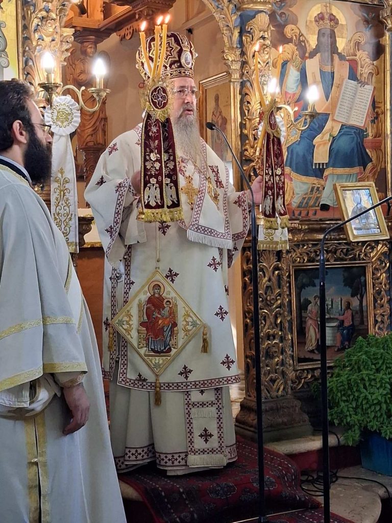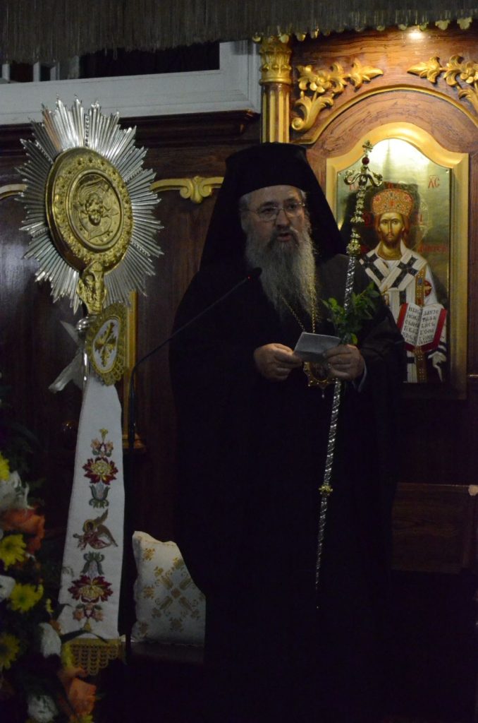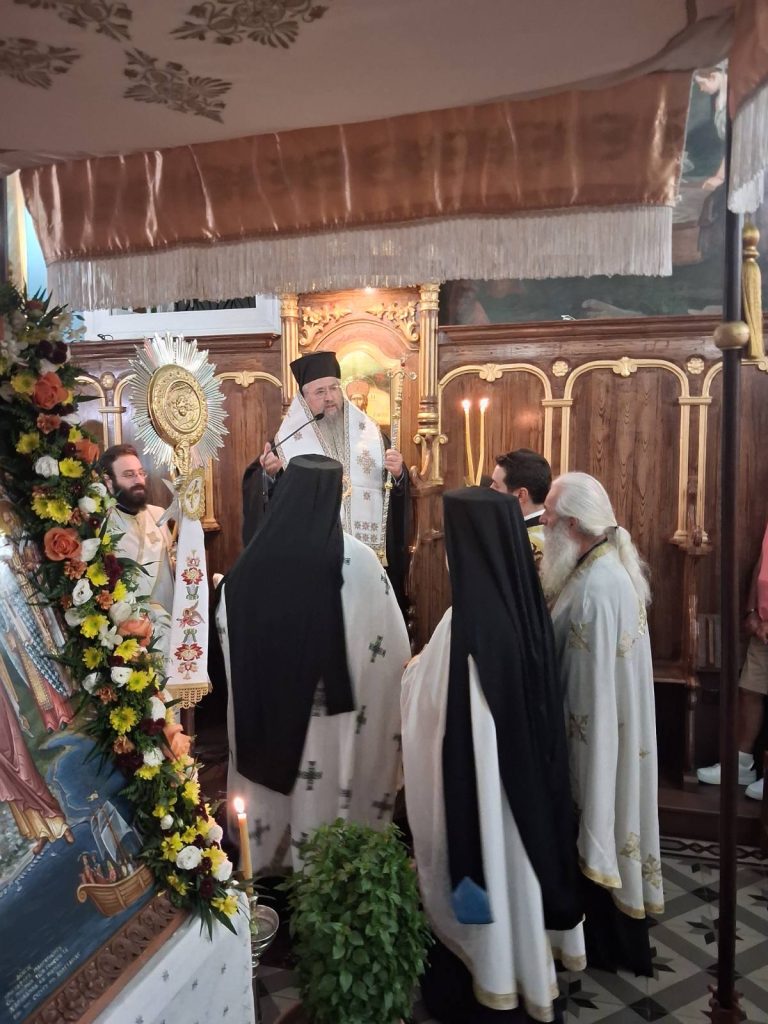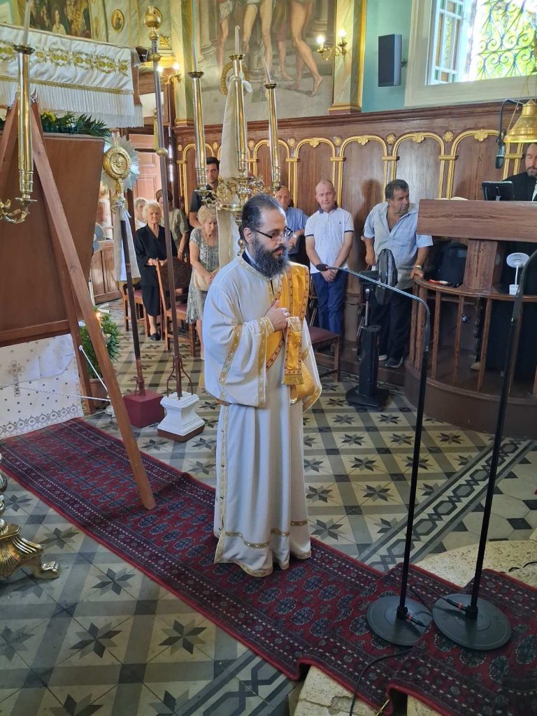 Το πρωί της Κυριακής, 17 Αυγούστου εψάλη η Ακολουθία του Όρθρου και στη συνέχεια τελέσθηκε Πανηγυρική Αρχιερατική Θεία Λειτουργία, προεξάρχοντος του Σεβασμιωτάτου Ποιμενάρχου μας κ. Θεοφίλου. Τον θείο λόγο κήρυξε ο Σεβασμιώτατος Μητροπολίτης μας λαμβάνοντας αφορμή από την Ευαγγελική περικοπή της ημέρας. Ο Σεβασμιωτάτος Ποιμενάρχης μας δεν παρέλειψε μεταξύ άλλων να μοιράσει το αντίδωρο και τον άρτο, ευχόμενος προσωπικά στον ευσεβή κλήρο και τον φιλόχριστο λαό έτη πολλά, καρποφόρα κι ευλογημένα κατ´άμφω
