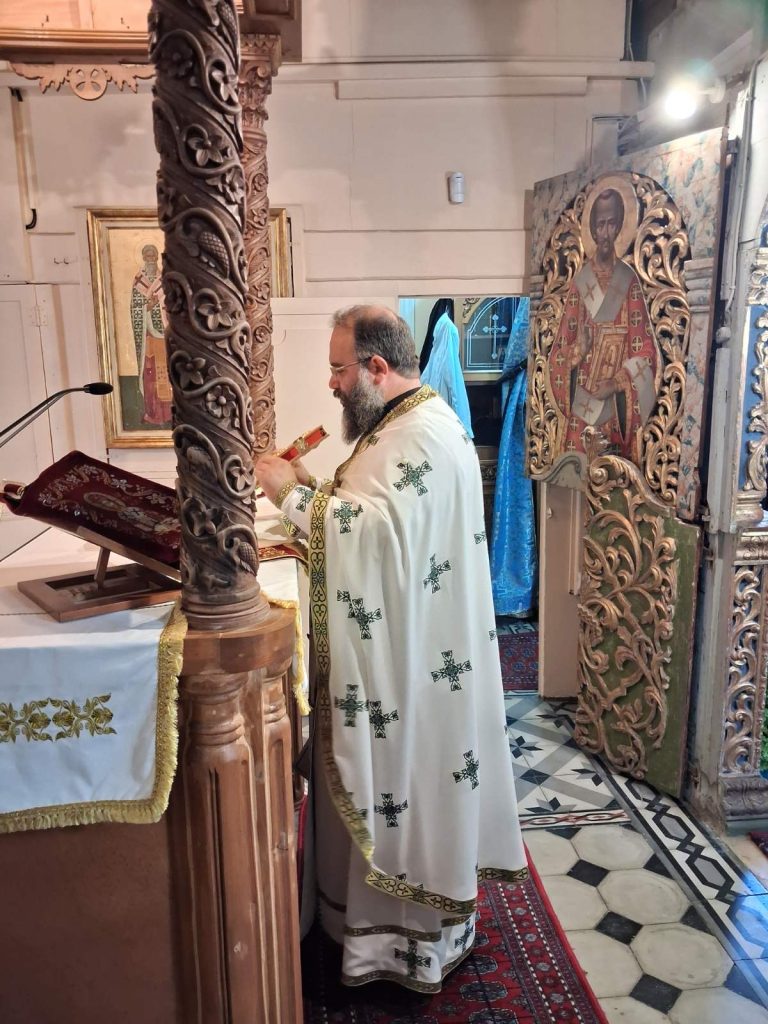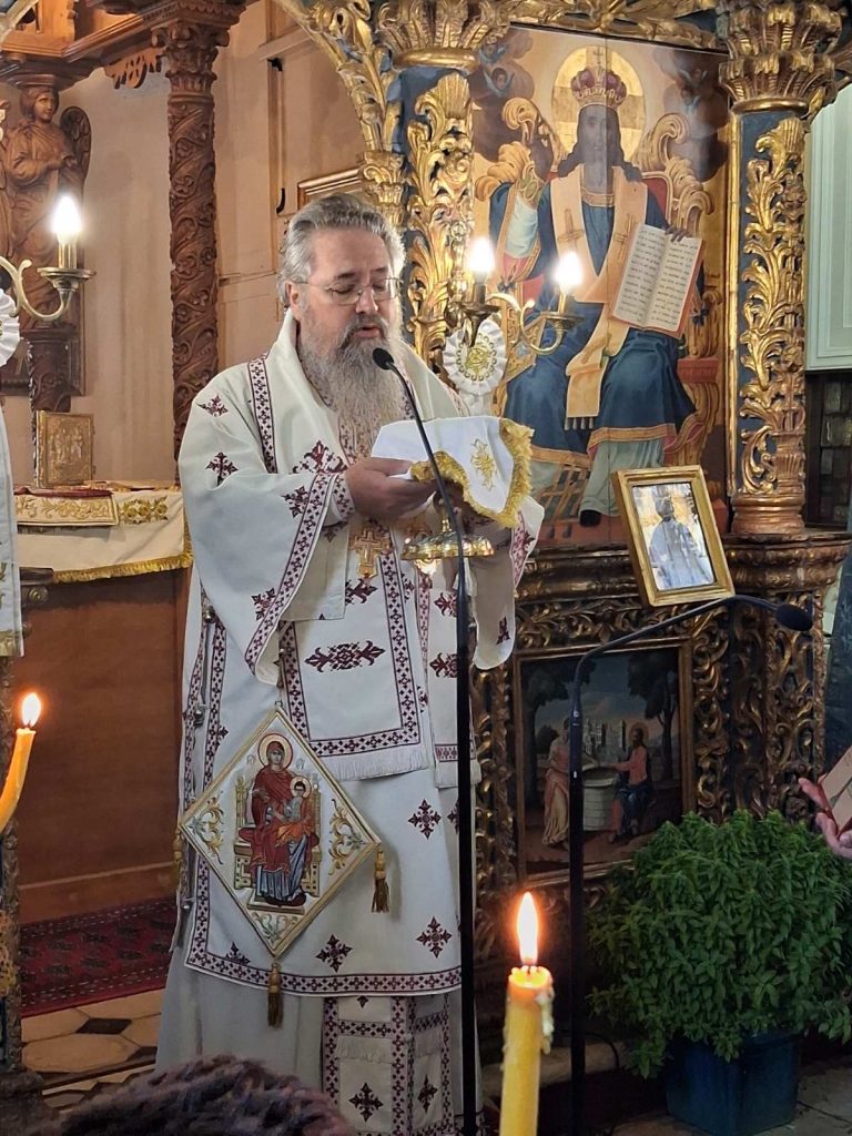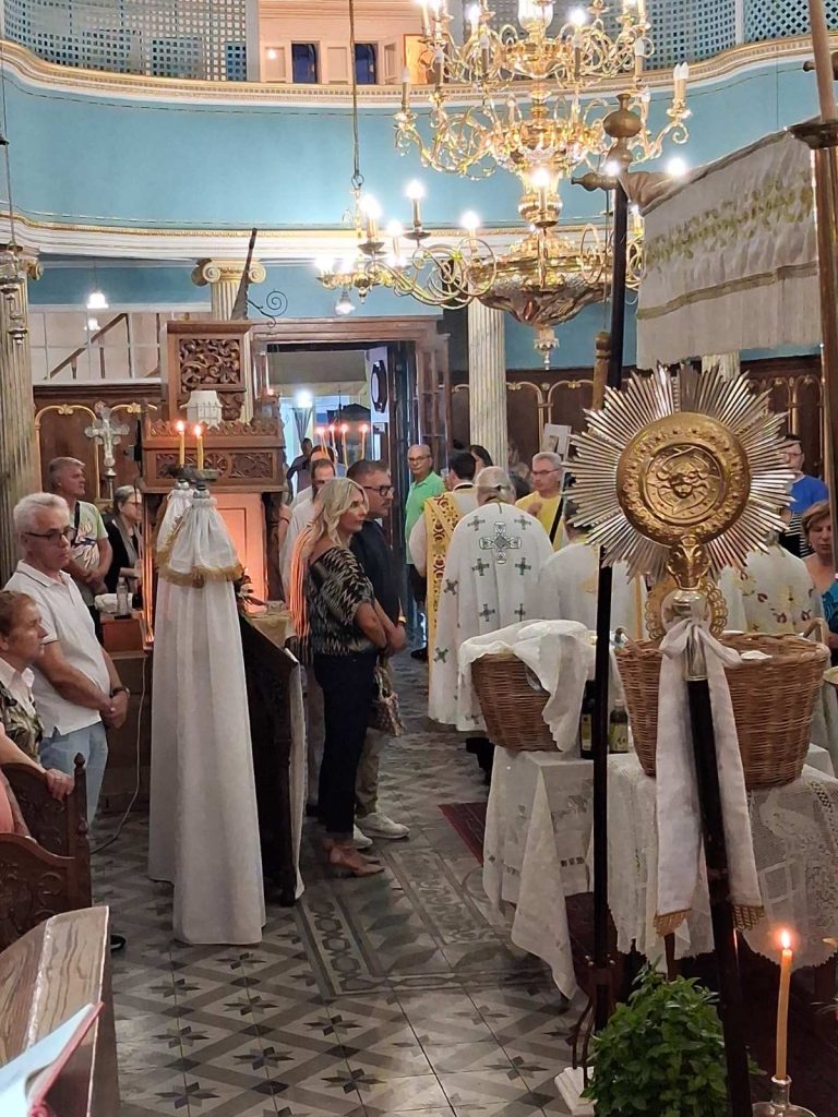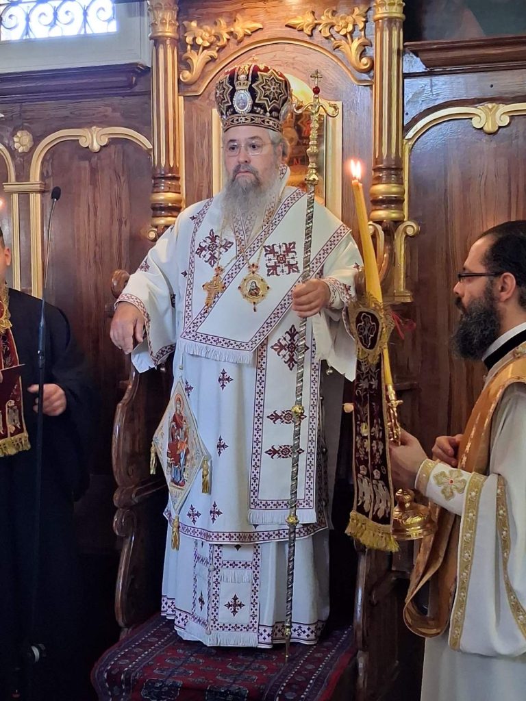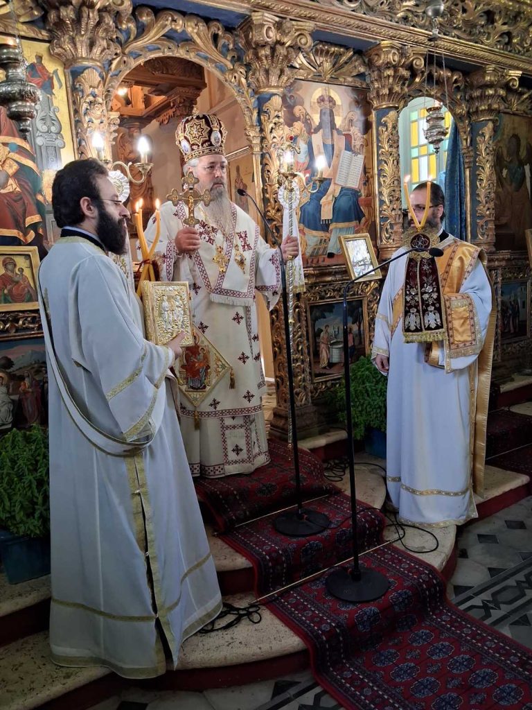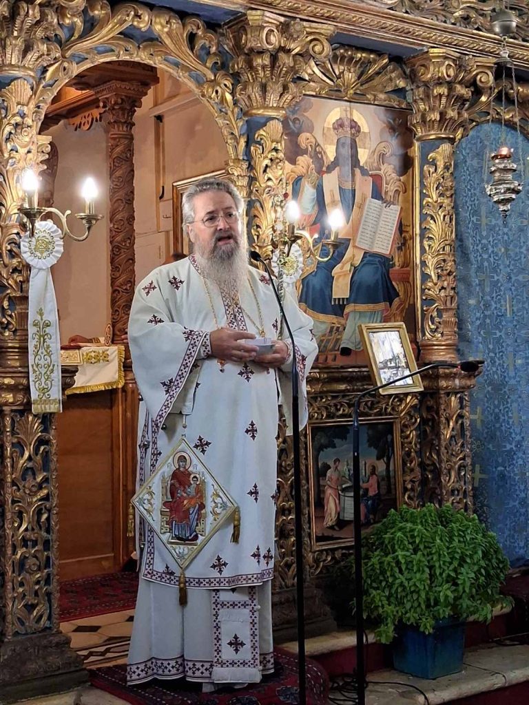 Το πρωί της Κυριακής, 17 Αυγούστου εψάλη η Ακολουθία του Όρθρου και στη συνέχεια τελέσθηκε Πανηγυρική Αρχιερατική Θεία Λειτουργία, προεξάρχοντος του Σεβασμιωτάτου Ποιμενάρχου μας κ. Θεοφίλου. Τον θείο λόγο κήρυξε ο Σεβασμιώτατος Μητροπολίτης μας λαμβάνοντας αφορμή από την Ευαγγελική περικοπή της ημέρας. Ο Σεβασμιωτάτος Ποιμενάρχης μας δεν παρέλειψε μεταξύ άλλων να μοιράσει το αντίδωρο και τον άρτο, ευχόμενος προσωπικά στον ευσεβή κλήρο και τον φιλόχριστο λαό έτη πολλά, καρποφόρα κι ευλογημένα κατ´άμφω