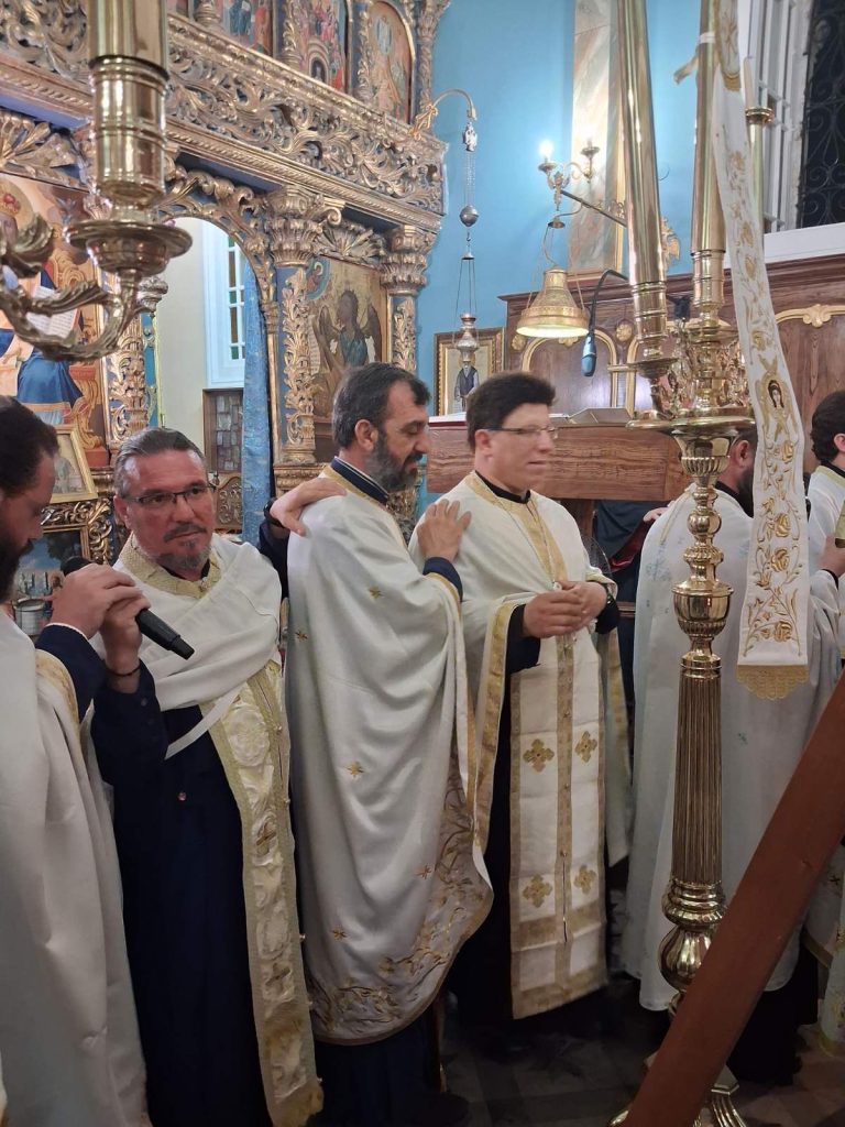 Το απόγευμα του Σαββάτου, 16 Αυγούστου και ώρα 8.00 μ.μ. εψάλη ο Μέγας Πανηγυρικός Αρχιερατικός Εσπερινός μετ’ αρτοκλασίας, χοροστατούντος του Σεβασμιωτάτου Ποιμενάρχου μας κ. Θεοφίλου, πλαισιωμένου από πλειάδα κληρικών της Ιεράς μας Μητροπόλεως. Τον θείο λόγο κήρυξε ο Πανοσιολογιώτατος Αρχιμανδρίτης π. Αρτέμιος Γρηγοριάτης. Μετά το πέρας της Πανηγυρικής Ακολουθίας και ώρα 10.30 μ.μ. εψάλη το Μικρό Απόδειπνο και στη συνέχεια η Ακολουθία των Χαιρετισμών προς τους εν Λευκάδι Αγίους.