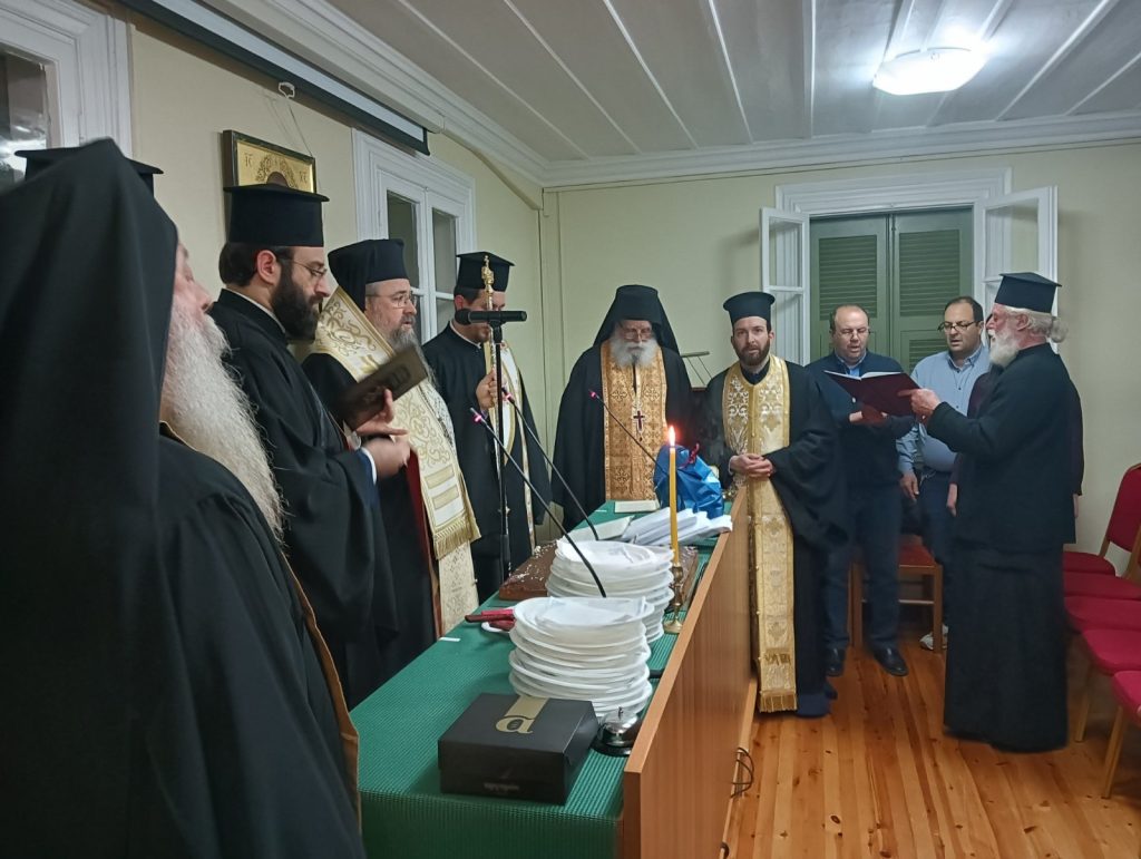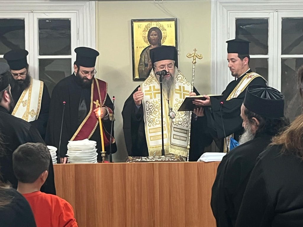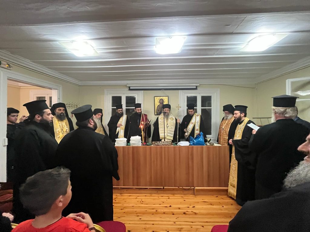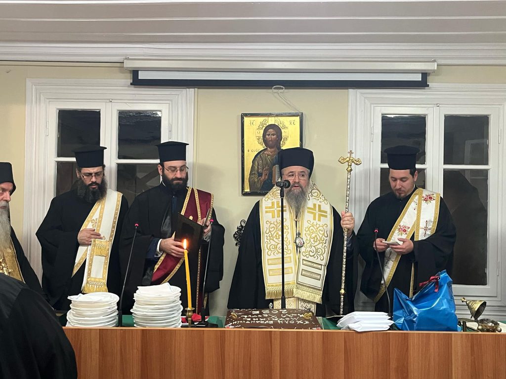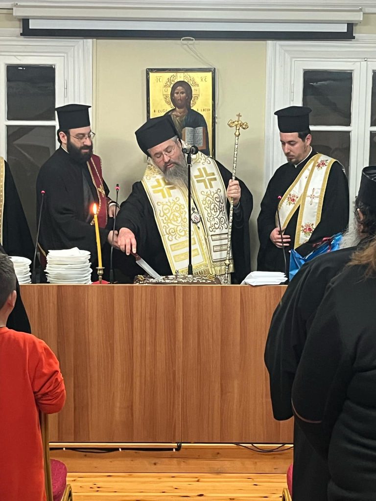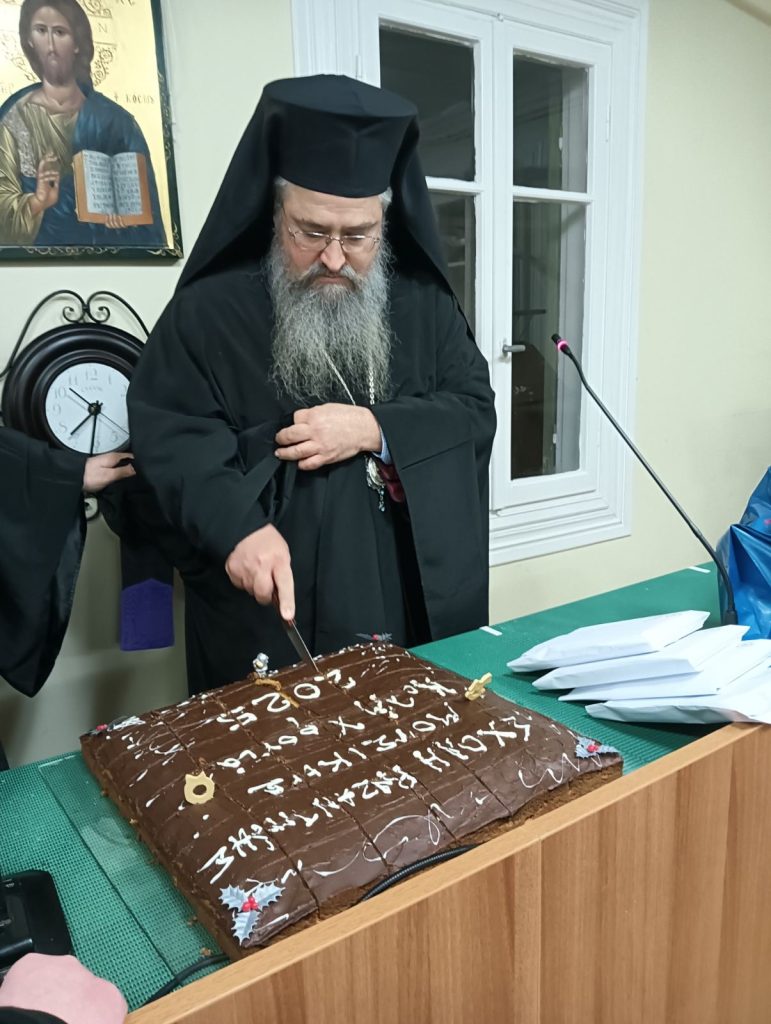 Μέσα σε εορταστικό κλίμα πραγματοποιήθηκε το απόγευμα της Δευτέρα, 27 Ιανουαρίου 2025 και ώρα 7.00 μ.μ. η κοπή της Αγιοβασιλόπιτας της Σχολής Βυζαντινής Μουσικής της Ιεράς Μητροπόλεώς μας στο φιλόξενο χώρο του Πνευματικού Κέντρου της ¨Καταφυγής¨. Την πίτα ευλόγησε ο Σεβασμιώτατος Ποιμενάρχης μας και Πρόεδρος του Δ.Σ. της Σχολής κ. Θεόφιλος, πλαισιωμένος από κληρικούς της Ιεράς μας Μητροπόλεως, παρουσία των διδασκόντων και των διδασκομένων της Σχολής.