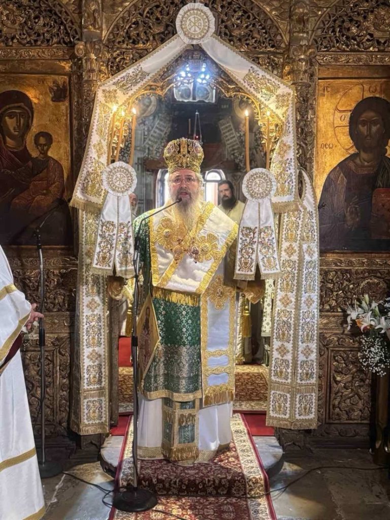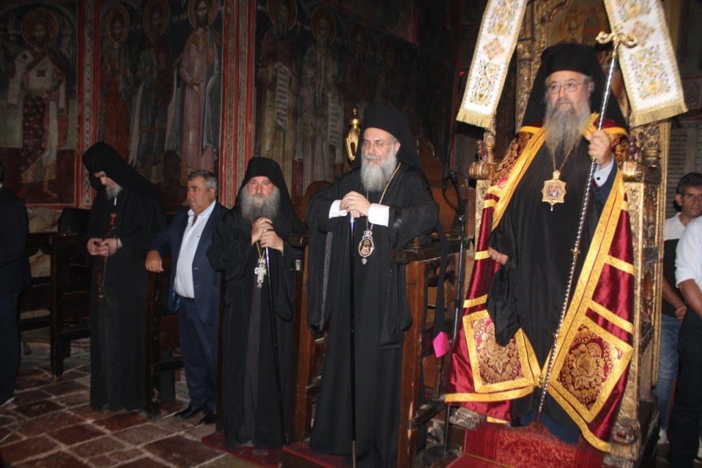 Τη Δευτέρα, 15 Σεπτεμβρίου, τελέστηκε ο Όρθρος και στη συνέχεια η Πανηγυρική Αρχιερατική Θεία Λειτουργία μετ’ αρτοκλασίας και θείου κηρύγματος, προεξάρχοντος του Σεβασμιωτάτου Μητροπολίτου μας κ. Θεοφίλου και συλλειτουργούντος του Σεβασμιωτάτου Μητροπολίτου κ. Χρυσοστόμου. Τον θείο λόγο κήρυξε ο Γενικός Αρχιερατικός Επίτροπος της Ιεράς μας Μητροπόλεως, Αιδεσιμολογιώτατος Πρωτοπρεσβύτερος π. Αθανάσιος Κοσμάς.