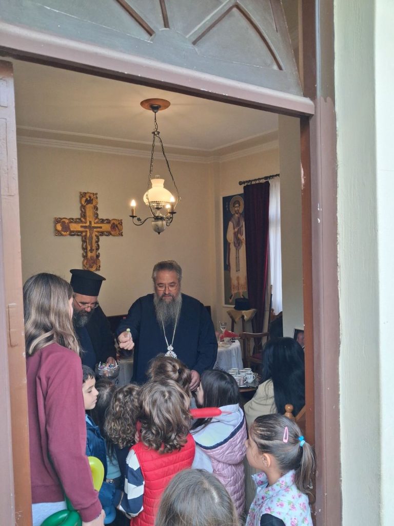 Το πρωί του Σαββάτου, 1 Νοεμβρίου εψάλη ο Όρθρος και στη συνέχεια τελέσθηκε η Πανηγυρική Αρχιερατική Θεία Λειτουργία μετ᾽ αρτοκλασίας, προεξάρχοντος του Σεβασμιωτάτου Ποιμενάρχου μας κ. Θεοφίλου. Στο Μυστήριο της Θείας Ευχαριστίας έλαβαν μέρος κληρικοί της Αρχιερατικής Περιφέρειας Λευκάδος ενώ πολλοί ήταν οι ευσεβείς πιστοί που από νωρίς κατέκλυσαν τον εορτάζοντα Ιερό Ενοριακό Ναό. Παρόντες μεταξύ άλλων ήταν ο Βουλευτής Λευκάδος κ. Αθανάσιος Καββαδάς, ο Δήμαρχος Ιθάκης κ. Διονύσιος Στανίτσας καθώς και οι εκπρόσωποι των στρατιωτικών αρχών του τόπου. Στον σύντομο λόγο του ο Σεβασμιώτατος Μητροπολίτης μας αναφέρθηκε στην ανιδιοτελή προσφορά των Αγίων Κοσμά και Δαμιανού ενώ δεν παρέλειψε να ευχαριστήσει δημόσια τον κ. Στανίτσα για την δωρεά ενός σύγχρονου σταθερού ηλεκτρονικού υπολογιστή αποκλειστικά για τις λειτουργικές ανάγκες του Οίκου Προνοίας (Γηροκομείου) της πόλεως. Πριν το πέρας της Πανηγυρικής Αρχιερατικής Θείας Λειτουργίας ο Σεβασμιώτατος Μητροπολίτης μας μεταξύ άλλων ευχήθηκε σε κλήρο και λαό καλό κι ευλογημένο μήνα δια πρεσβειών των Αγίων Κοσμά και Δαμιανού και στη συνέχεια μοίρασε το αντίδωρο και τον άρτο στο ευσεβές εκκλησίασμα. Λίγο αργότερα δέχθηκε στο Αρχονταρίκι του Ιερού Ναού τον Ιεροκήρυκα της Ιεράς μας Μητροπόλεως, Πανοσιολογιώτατο Αρχιμανδρίτη π. Ιωαννίκιο Ζαμπέλη και τα παιδιά των Κατηχητικών Συντροφιών της Ενορίας Ευαγγελιστρίας Λευκάδος στα οποία απηύθυνε πατρικές ευχές και προσέφερε γλυκά και διάφορες ευλογίες.