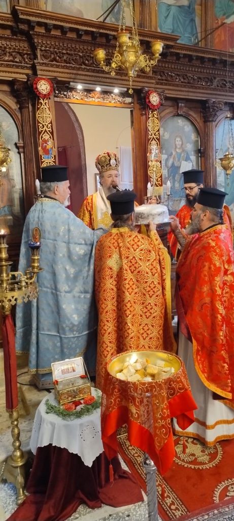 Το πρωί της Παρασκευής, 27 Δεκεμβρίου 2024  εψάλη στον Ιερό Ενοριακό Ναό Αγίου Στεφάνου Βουρνικά Λευκάδος η Ακολουθία του Όρθρου και στη συνέχεια τελέσθηκε η Πανηγυρική Αρχιερατική Θεία Λειτουργία μετ᾽αρτοκλασίας, ιερουργούντος του Σεβασμιωτάτου Ποιμενάρχου μας κ. Θεοφίλου πλαισιωμένου από κληρικούς των Αρχιερατικών Περιφερειών Λευκάδος και Βασιλικής. Πριν το πέρας της Πανηγυρικής Αρχιερατικής Θείας Λειτουργίας ο Σεβασμιώτατος Μητροπολίτης μας αναφέρθηκε εν συντομία στο βίο και το μαρτυρικό θάνατο του εορταζομένου Αγίου Πρωτομάρτυρος και Αρχιδιακόνου Στεφάνου και την υποχρέωση που έχουμε όλοι, ως Χριστιανοί, να μαρτυρούμε καθημερινώς την πίστη μας στο όνομα του εν Τριάδι Θεού, ευχήθηκε καλό υπόλοιπο Αγίου Δωδεκαημέρου και μοίρασε τον ευλογημένο άρτο στο ευσεβές εκκλησίασμα.