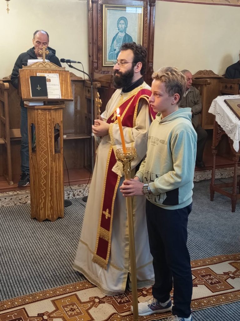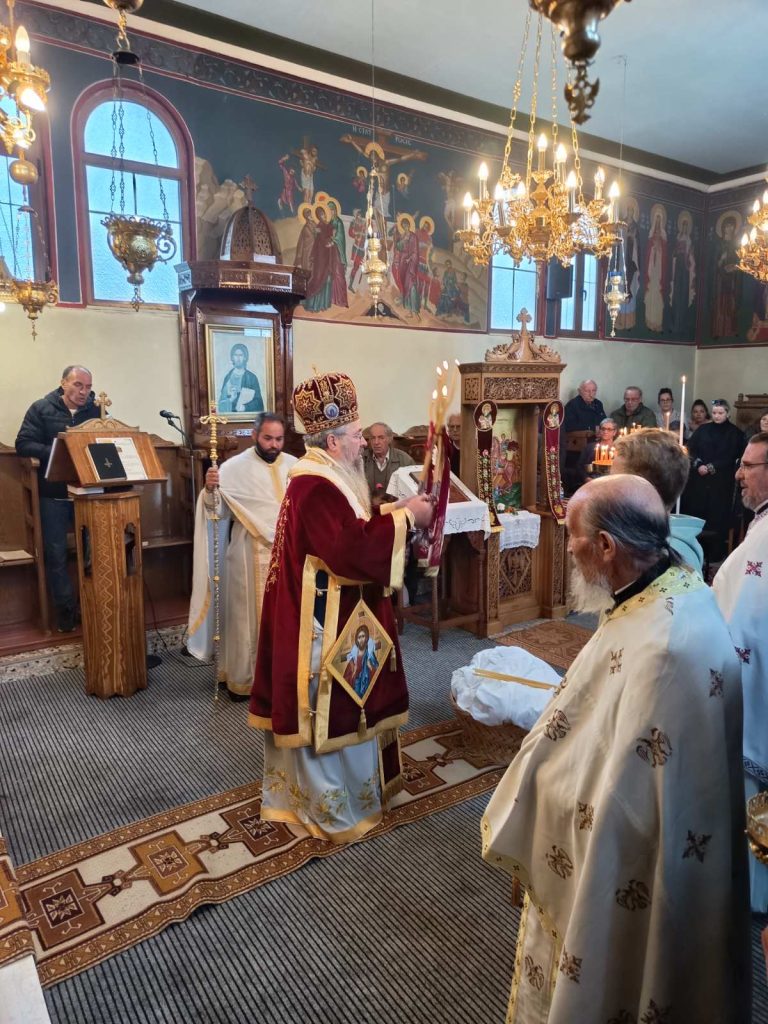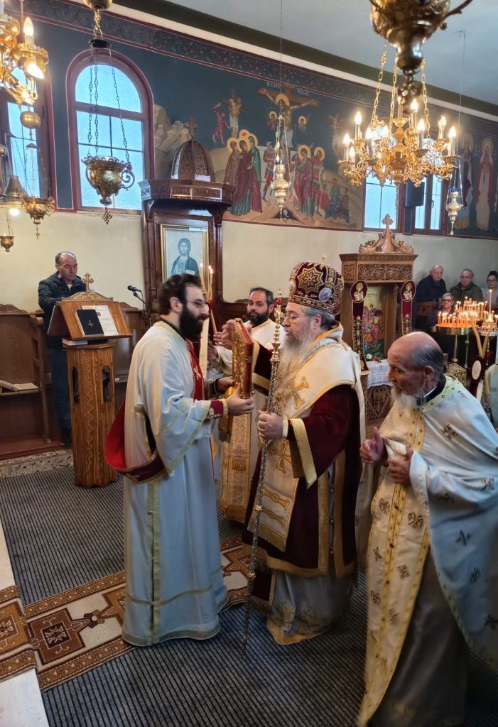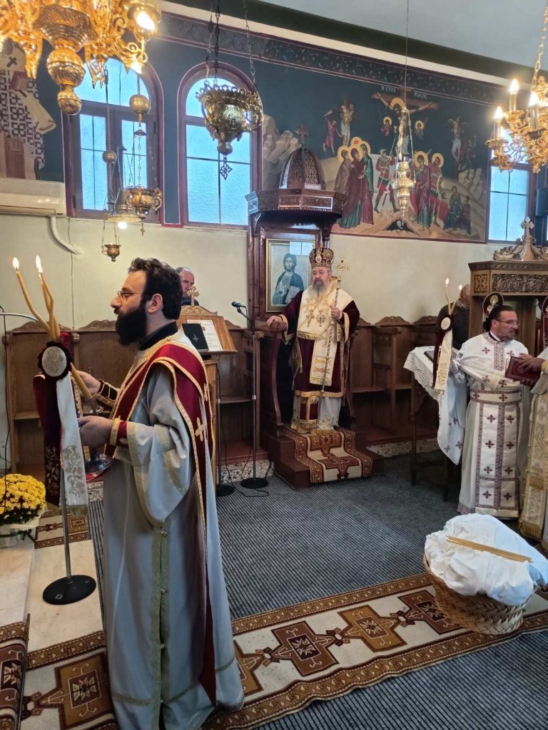 To πρωί της Κυριακής, 26 Οκτωβρίου 2025 τελέσθηκε στον εορτάζοντα Ιερό Ενοριακό Ναό Αγίου Δημητρίου Μανασίου Λευκάδος Πανηγυρική Αρχιερατική Θεία Λειτουργία μετ᾽αρτοκλασίας, προεξάρχοντος του Σεβασμιωτάτου Ποιμενάρχου μας κ. Θεοφίλου. Τον Σεβασμιώτατο πλαισίωσαν ο εφημέριος του εν λόγω Ιερού Ναού, Αιδεσιμώτατος Πρεσβύτερος π. Γεώργιος Αϊβασιλιώτης, ο τέως εφημέριος Αιδεσιμώτατος Οικονόμος π. Θωμάς Κοντοπύργιας, ο Αιδεσιμώτατος Πρεσβύτερος π. Δημήτριος Χριστόπουλος και ο ευλαβέστατος διάκονος π. Σεραφείμ Περγάρης. Τον θείο λόγο κήρυξε ο Σεβασμιώτατος Μητροπολίτης μας λαμβάνοντας αφορμή από τον βίο και το μαρτύριο του εορταζόμενου Αγίου της Εκκλησίας μας.