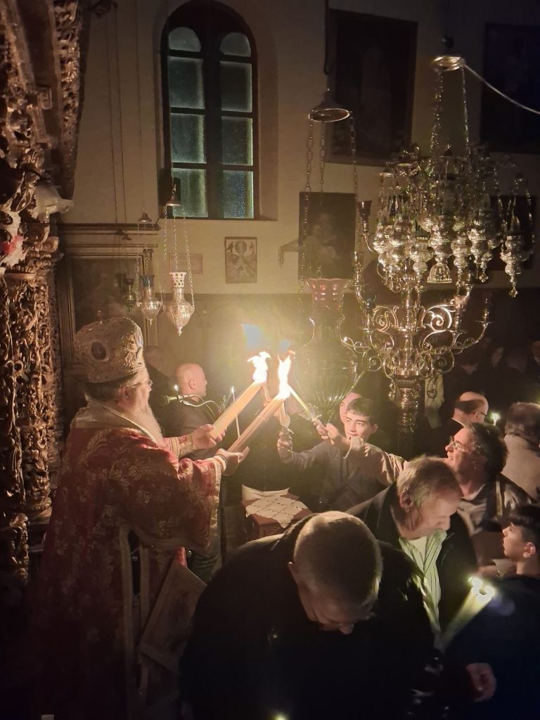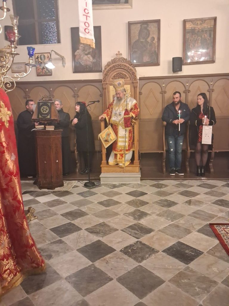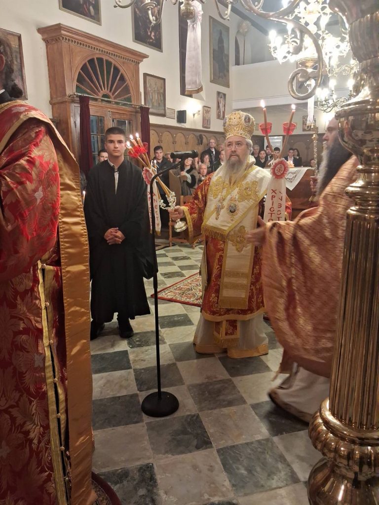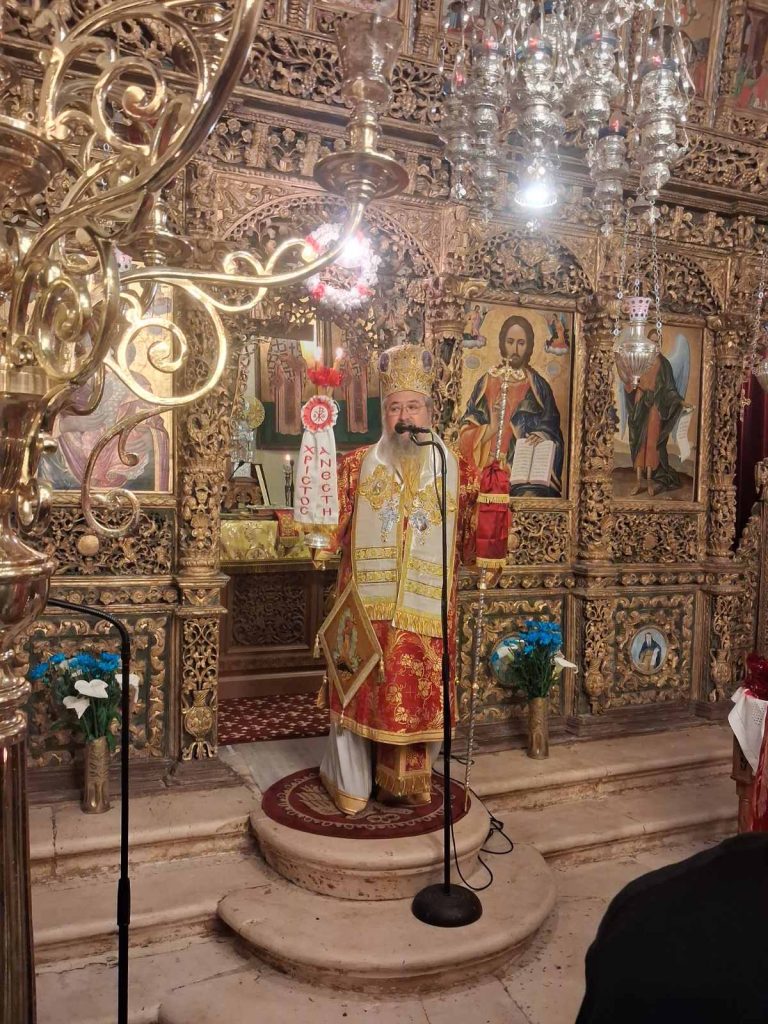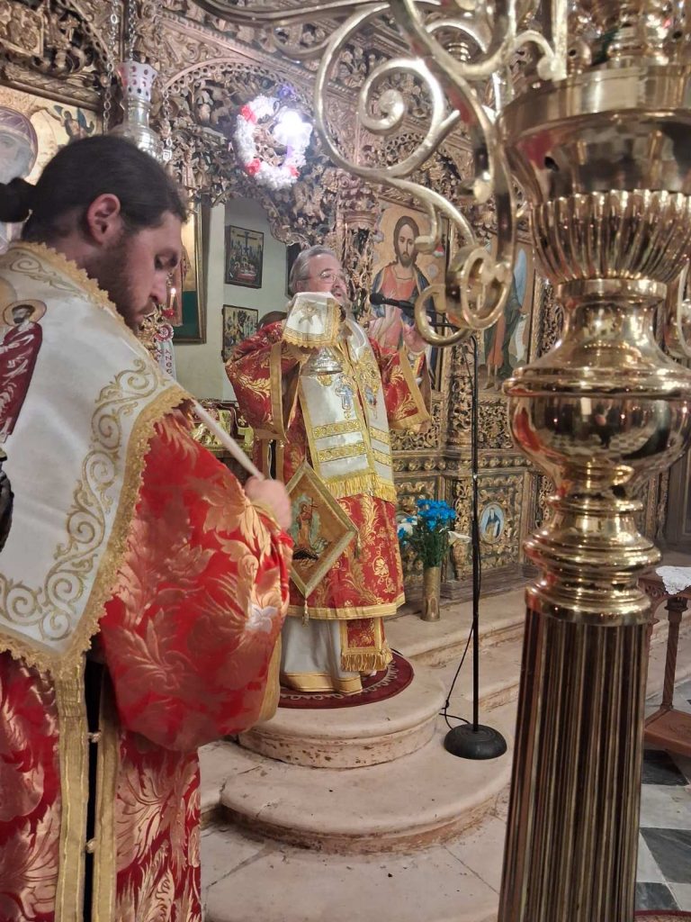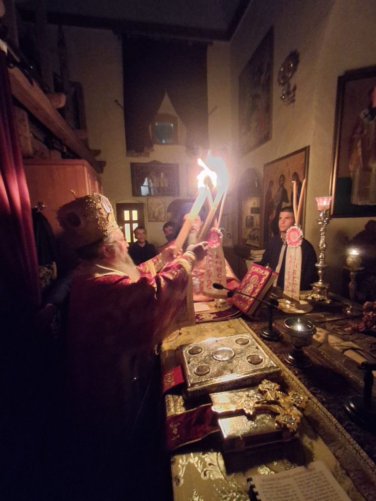 Το βράδυ του Μεγάλου Σαββάτου, 11 Απριλίου 2025 και ώρα 11.15 μ.μ. ο Σεβασμιώτατος Ποιμενάρχης μας μετέβει στον Ιερό Μητροπολιτικό Ναό Εισοδίων της Θεοτόκου Βαθεός Ιθάκης όπου και τέλεσε την Ακολουθία της Αναστάσεως. Μέσα σε κατανυκτική ατμόσφαιρα ο Σεβασμιώτατος, ο κλήρος και ο λαός έψαλλαν στον προαύλιο χώρο του Ιερού Ναού το «Χριστός Ανέστη». Στη συνέχεια προεξήρχε της Αναστάσιμης Αρχιερατικής Θείας Λειτουργίας πλαισιωμένος από τον εφημέριο, Πανοσ. Αρχιμανδρίτη π. Σεβαστιανό Μόσχο και τον ευλαβέστατο διάκονο π. Καλλίνικο Καρανθίμου. Tο παρόν μεταξύ άλλων έδωσε ο Γενικός Γραμματέας του Υπουργείου Ναυτιλίας και Νησιωτικής Πολιτικής, κ. Μανώλης Κουτουλάκης, ο Δήμαρχος Ιθάκης κ. Διονύσιος Στανίτσας και οι στρατιωτικοί και πολιτιστικοί φορείς του τόπου. Πριν το πέρας της Αναστάσιμης Θείας Λειτουργίας ο Σεβασμιώτατος Μητροπολίτης μας ανάγνωσε τον Κατηχητικό Λόγο του Αγίου Ιωάννου του Χρυσοστόμου και ευλόγησε τα πασχαλινά αυγά ενώ δεν παρέλειψε να τονίσει στην σύντομη ομιλία του την βαθύτερη σημασία της Ανάστασης του Κυρίου μας, της παραμονής των πιστών στην Αναστάσιμη Θεία Λειτουργία και της μετάληψης των Αχράντων Μυστηρίων. Στην συνέχεια και αφού έψαλε κλήρος και λαός το ¨Χριστός Ανέστη¨ μοιράστηκε στο πολυπληθές εκκλησίασμα το ευλογημένο αντίδωρο.