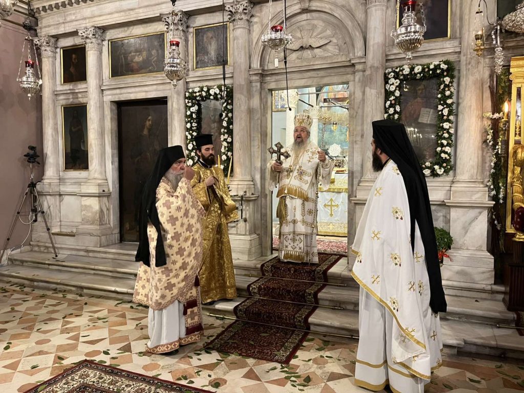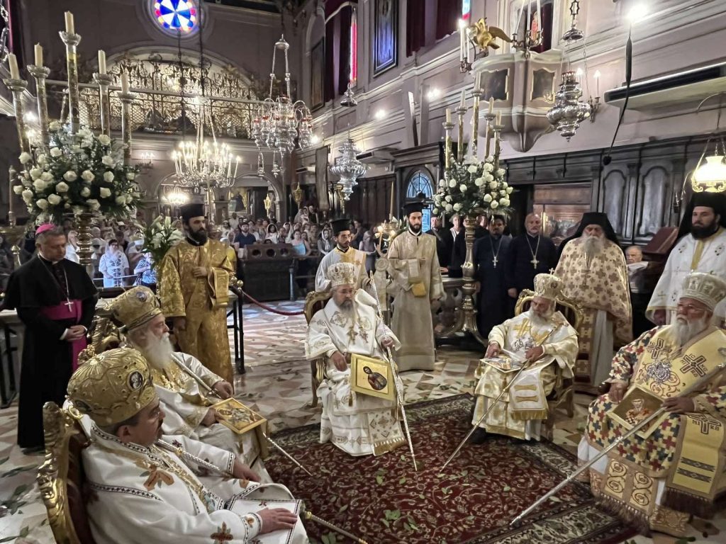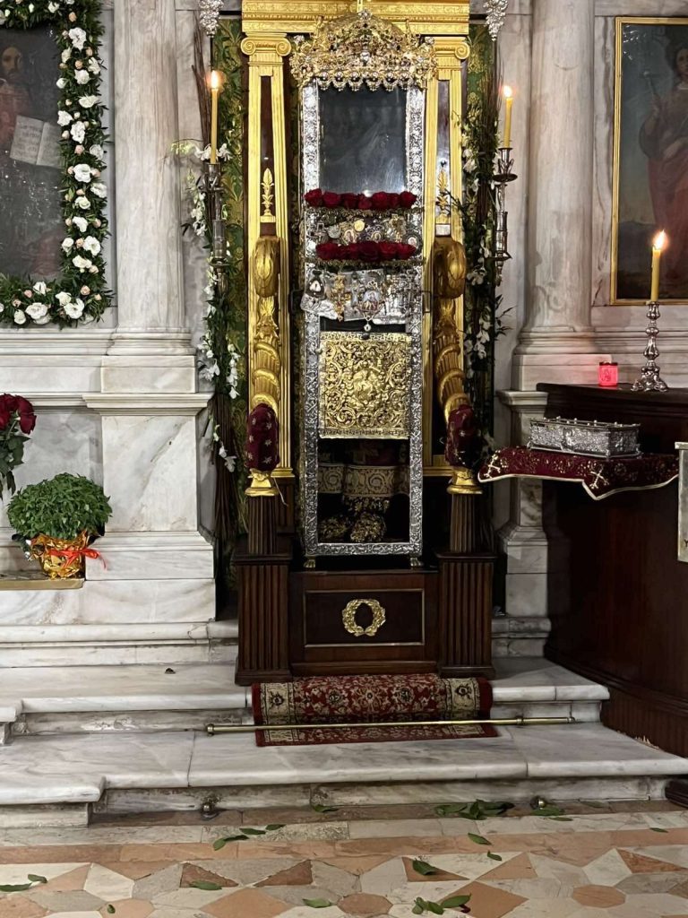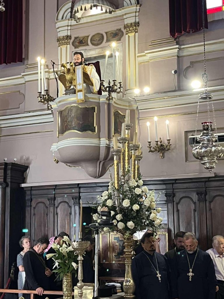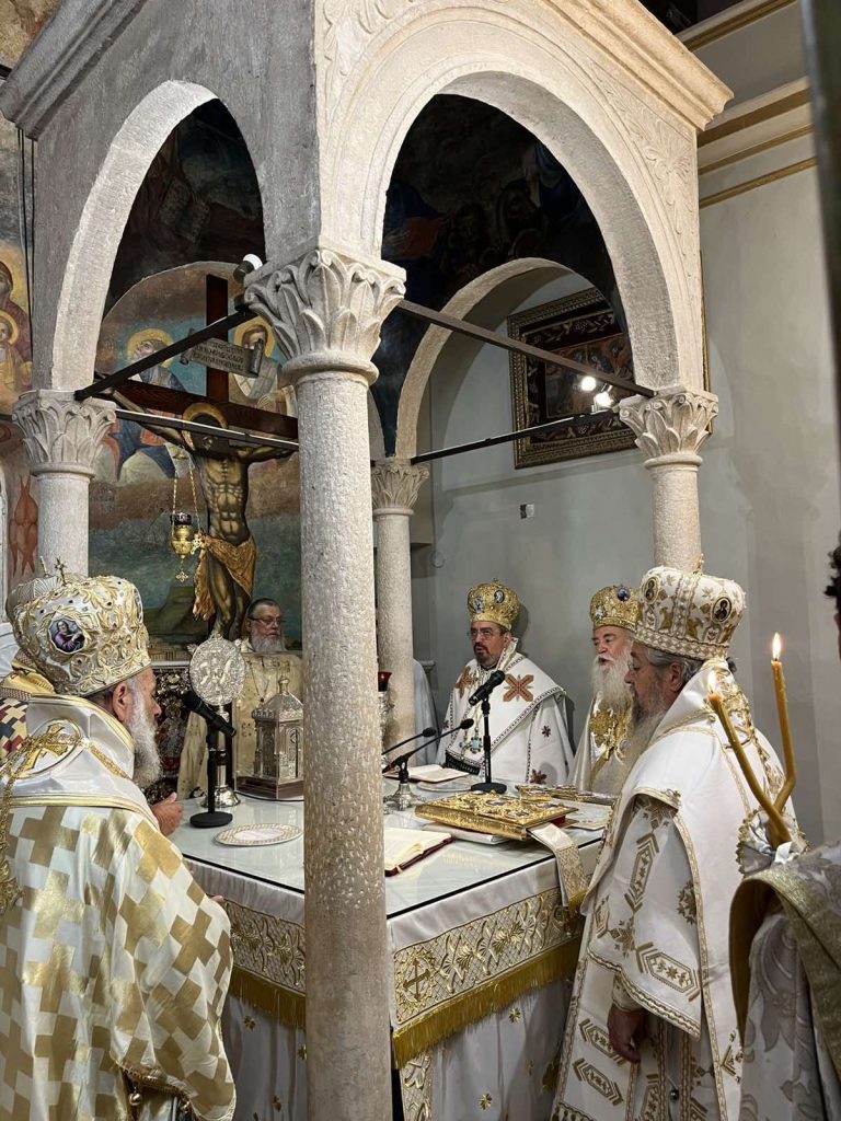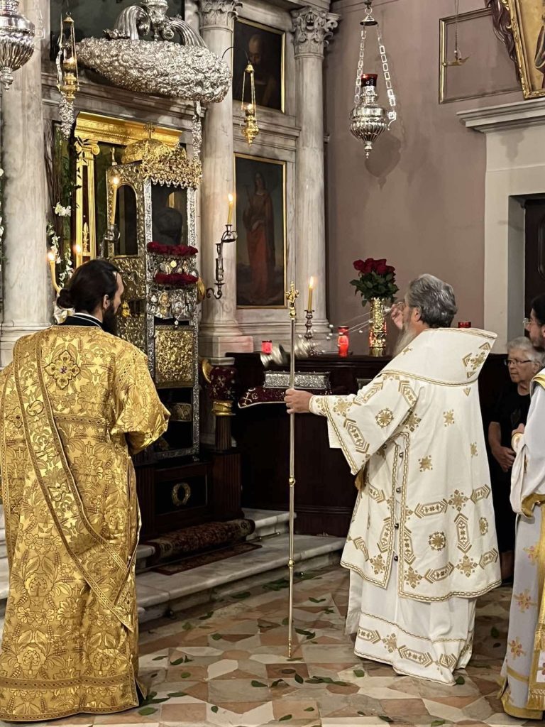 Συνεχίστηκαν το πρωί της Τρίτης, 12 Αυγούστου 2025 οι εκδηλώσεις για την ανάμνηση του θαύματος του Αγίου Σπυρίδωνος, με το οποίο διασώθηκε το νησί από την πολιορκία των Οθωμανών Τούρκων το 1716, με την τέλεση στο Ιερό Προσκύνημα του Αγίου Σπυρίδωνος, Αρχιερατικού Συλλείτουργου, στο οποίο προεξήρχε ο Σεβασμιώτατος Ποιμενάρχης μας, Μητροπολίτης Λευκάδος και Ιθάκης κ. Θεόφιλος, συλλειτουργούντων του Σεβασμιωτάτου Μητροπολίτου Ζακύνθου και Στροφάδων κ. Διονυσίου, του Σεβασμιωτάτου Μητροπολίτου Θεσσαλιώτιδος και Φαναριοφερσάλων κ. Τιμοθέου, του Θεοφιλεστάτου Επισκόπου Κοτυαίου κ. Διονυσίου, βοηθού επισκόπου της Ιεράς Μητροπόλεως Ιταλίας, και του οικείου Ποιμενάρχου, Σεβασμιωτάτου Μητροπολίτου Κερκύρας, Παξών και Διαποντίων Νήσων κ. Νεκταρίου.