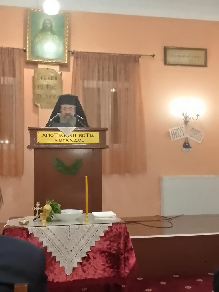 Το απόγευμα της Κυριακής, 26 Οκτωβρίου 2025 και ώρα 6:00 μ.μ. εψάλη στο κτήριο του Τμήματος της Πανελληνίου Ενώσεως Γονέων «Η Χριστιανική Αγωγή» (ΓΕΧΑ – όπισθεν Ι. Ναού Παντοκράτωρος Λευκάδος) η Ακολουθία του Αγιασμού με την ευκαιρία της έναρξης των εφετινών ομιλιών του Ιεραποστολικού έτους 2025-2026. Τον Αγιασμό τέλεσε ο Σεβασμιώτατος Ποινενάρχης μας κ. Θεόφιλος πλαισιωμένος από κληρικούς της Ιεράς μας Μητροπόλεως. Στη συνέχεια το λόγο έλαβε ο πρόεδρος της ΓΕΧΑ Λευκάδος κ. Αιμίλιος Κουτσονίκας ο οποίος απηύθυνε χαιρετισμό και αμέσως μετά ο Σεβασμιώτατος Μητροπολίτης μας, λαμβάνοντας αφορμή από την Κυριακάτικη Ευαγγελική περικοπή, ανέπτυξε το θέμα: «Ὑπήντησεν αὐτῷ ἀνήρ τις ἐκ τῆς πόλεως,ὅς εἶχε δαιμόνια ἐκ χρόνων ἰκανῶν»(Λουκ. η’ 27-39).