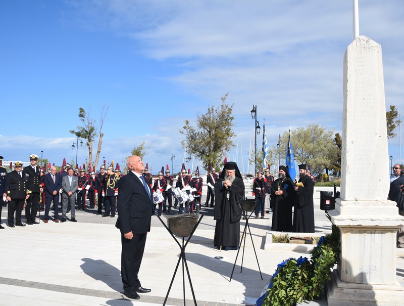 Ακολούθησε Επιμνημόσυνη δέηση από τον Σεβασμιώτατο Ποιμενάρχη μας κ. Θεόφιλο και στη συνέχεια κατάθεση στεφάνων στο Πάρκο των Ποιητών, όπου τηρήθηκε σιγή ενός λεπτού και ανακρούστηκε ο Εθνικός Ύμνος. Οι εκδηλώσεις κορυφώθηκαν με τη μαθητική παρέλαση επί της οδού Θ. Φλογαΐτη, στην οποία συμμετείχαν μαθητές όλων των βαθμίδων εκπαίδευσης της Λευκάδας. Αμέσως μετά, παρέλασαν τα οχήματα των Σωμάτων Ασφαλείας του Νομού Λευκάδας, που απέσπασαν το θερμό χειροκρότημα των παρευρισκομένων. Η συμμετοχή της μαθητιώσας νεολαίας και των ένστολων δυνάμεων απέδωσε τιμή στους ήρωες του Έπους του ’40 και ανέδειξε το διαχρονικό μήνυμα της ελευθερίας, της ενότητας και της εθνικής αξιοπρέπειας. Οι Λευκαδίτες κατέκλυσαν την οδό Φλογαΐτη, χειροκροτώντας θερμά τους συμμετέχοντες, ενώ η Φιλαρμονική Λευκάδας συνόδευσε μουσικά την εκδήλωση, προσδίδοντας ιδιαίτερο παλμό και συγκίνηση στη γιορτινή ημέρα.