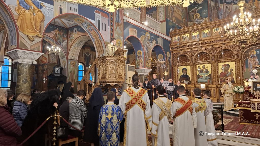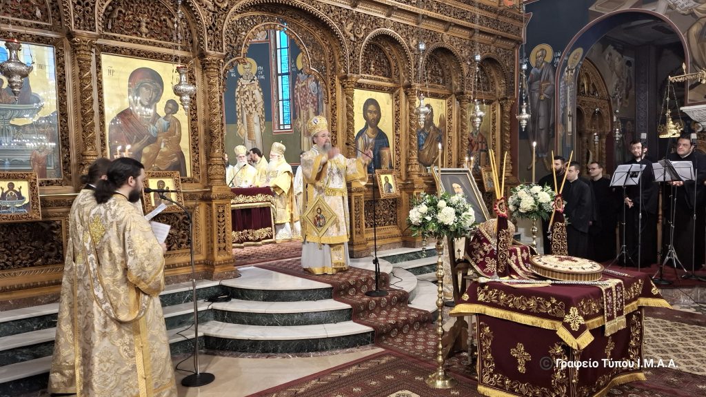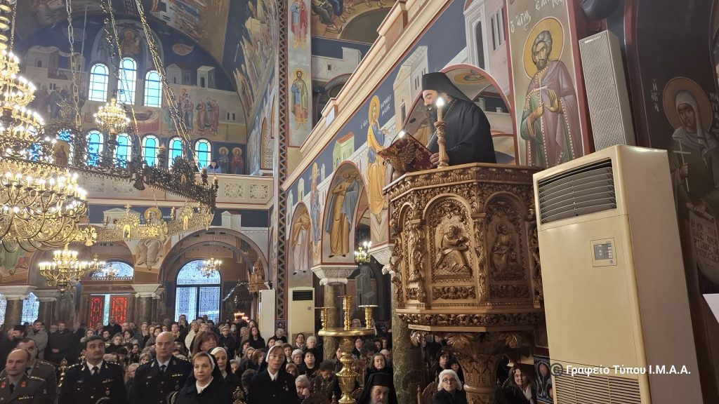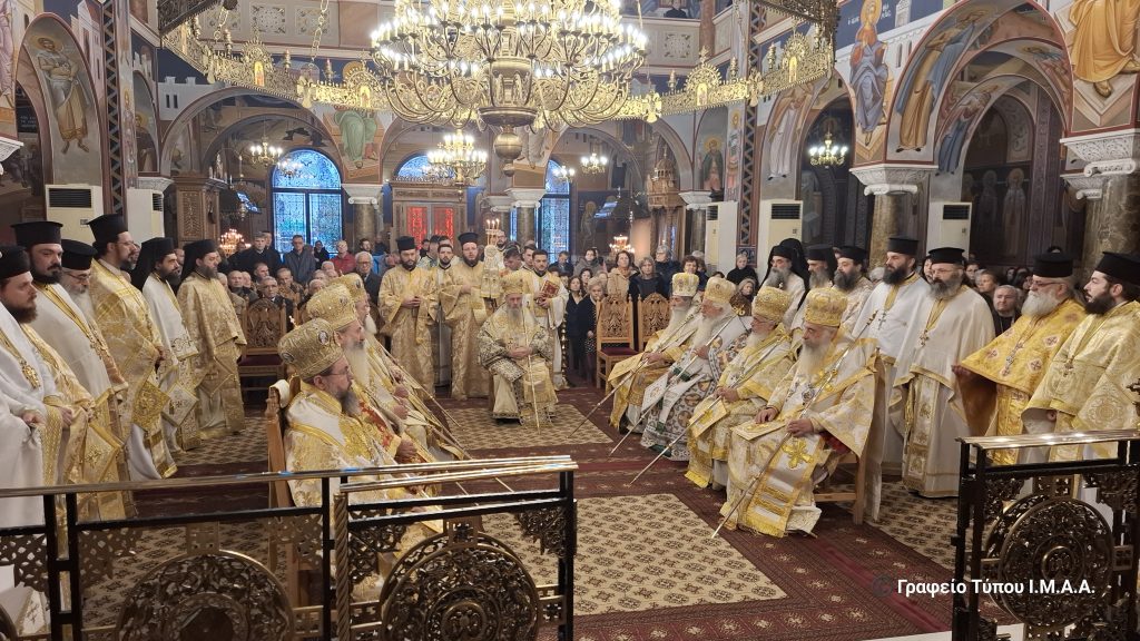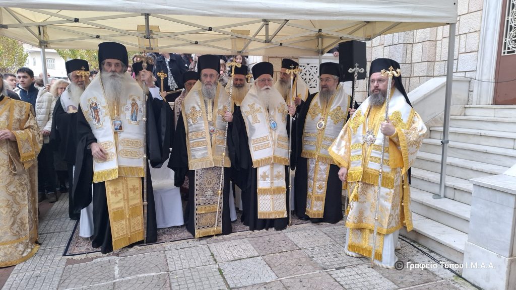Τον γνήσιο εκκλησιαστικό άνδρα, τον πεφωτισμένο Ιεράρχη, τον ακαταπόνητο εργάτη του Ευαγγελίου ήρθαν να τιμήσουν σήμερα και τα πλήθη των πιστών, τα οποία κατέκλεισαν τούτο τον περικαλλή και καλλιμάρμαρο Ιερό Ναό.