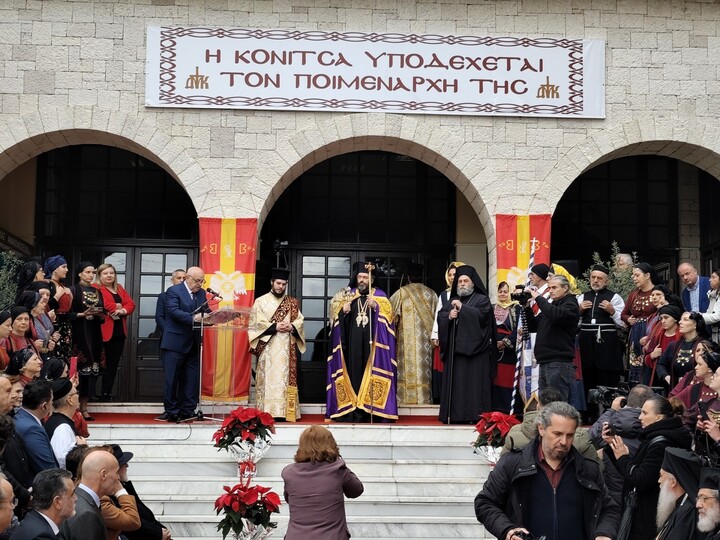 Αρχικά η πρώτη υποδοχή έγινε στην ιστορική έδρα της Μητροπόλεως στο Δελβινάκι, όπου τον προσφώνησε με θερμά λόγια ο Δήμαρχος Πωγωνίου κ. Καψάλης. Στη συνέχεια τελέστηκε η πρώτη πράξη της ενθρόνισης στον Ιερό Μητροπολιτικό Ναό Κοιμήσεως της Θεοτόκου με την προβλεπόμενη Δοξολογία. Στην Κόνιτσα, στις 12:30 μ.μ. πραγματοποιήθηκε η υποδοχή του νέου Μητροπολίτη στην πλατεία Δημαρχείου, με την παρουσία των Τοπικών Αρχών, πολλών πιστών και Αρχιερέων της Εκκλησίας της Ελλάδος και άλλων Ορθοδόξων Εκκλησιών. Μπροστά στο Δημαρχείο τον υποδέχθηκε ο Δήμαρχος Κονίτσης κ. Ανδρέας Παπασπύρου και τον καλωσόρισε με σύντομη προσλαλιά.