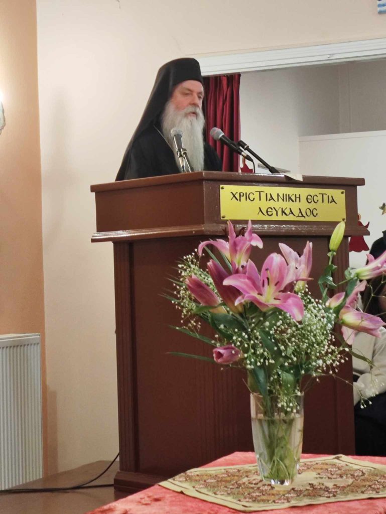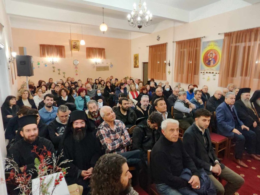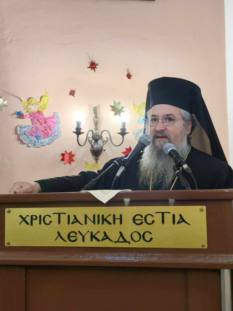 Πραγματοποιήθηκε, με την ευλογία του Σεβασμιωτάτου Ποιμενάρχου μας κ. Θεοφίλου, το απόγευμα της Κυριακής, 22 Δεκεμβρίου 2024 και ώρα 6.00 μ.μ. στην κατάμεστη αίθουσα της ΓΕΧΑ Λευκάδος (όπισθεν του Ι. Ναού Παντοκράτορος) η προγραμματισμένη Χριστουγεννιάτικη εορτή της Ενώσεως Γονέων Χριστιανικής Αγωγής με κύριο ομιλητή τον Καθηγούμενο της Ιεράς Μονής Υπεραγίας Θεοτόκου Φανερωμένης Λευκάδος, Πανοσιολογιώτατο Αρχιμανδρίτη π. Νικηφόρο Ασπρογέρακα και θέμα: ¨Η εορτή της Γεννήσεως μέσα από τους ύμνους της Εκκλησίας¨. Την ζεστή εκδήλωση πλαισίωσαν βυζαντινοί ύμνοι και παραδοσιακά κάλαντα από την Χορωδία της Σχολής της Βυζαντινής Μουσικής της Ιεράς μας Μητροπόλεως με διευθυντή τον κ. Κωνσταντίνο Λανάρα καθώς και Χριστουγεννιάτικη ομιλία και αφήγηση από την Ελλογιμωτάτη κ. Χαρά Τυπάλδου – Aντωνίου, φιλόλογο – συγγραφέα και την Ελλογιμωτάτη κ. Αγγελική Κόγκα,φιλόλογο. Την παρουσία τους μεταξύ άλλων έδωσαν ο Σεβασμιώτατος Μητροπολίτης μας κ. Θεόφιλος, κληρικοί της Ιεράς μας Μητροπόλεως, ο Βουλευτής Λευκάδος κ. Αθανάσιος Καββαδάς και ο Πρόεδρος της ΓΕΧΑ Λευκάδος κ. Αιμίλιος Κουτσονίκας.