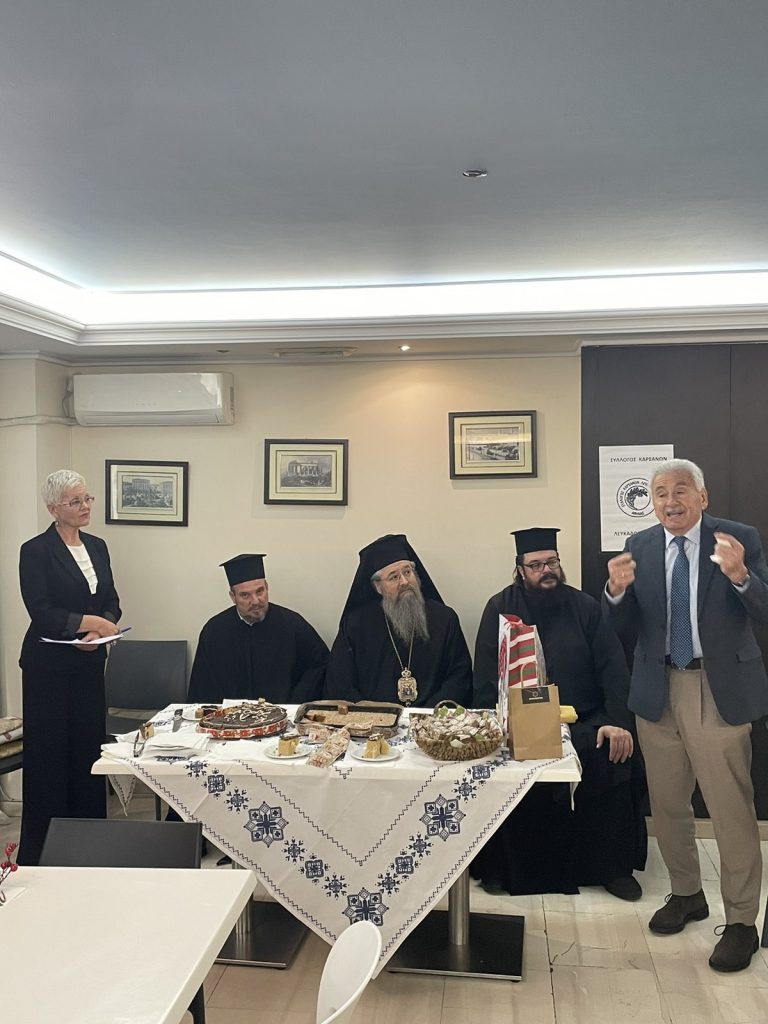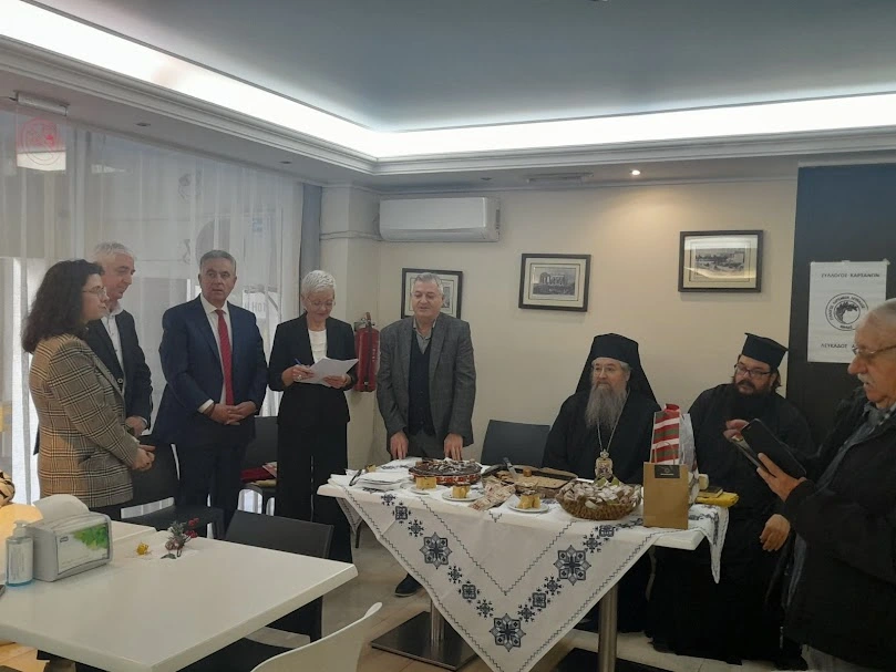 Στην κατάμεστη αίθουσα του ξενοδοχείου Economy στην Αθήνα και σε φιλικό και εγκάρδιο κλίμα πραγματοποιήθηκε την Κυριακή 19 Ιανουαρίου 2025 η κοπή της Πρωτοχρονιάτικης πίτας του Συλλόγου Καρσάνων Λευκάδος-Αθήνας. Την πίτα ευλόγησε ο Σεβασμιώτατος Μητροπολίτης Λευκάδος και Ιθάκης κ. Θεόφιλος. Η Πρόεδρος του Συλλόγου κ. Όλγα Σταύρακα – Μιχαήλ καλωσόρισε και ευχαρίστησε τους καλεσμένους εκ μέρους του Διοικητικού συμβουλίου και ευχήθηκε σε όλες και όλους καλή χρονιά με υγεία, ευμάρεια και δημιουργικότητα. Στην εκδήλωση παρευρέθηκαν ο π. Πρόεδρος της Βουλής κ. Απόστολος Κακλαμάνης, ο Βουλευτής Λευκάδας κ. Αθανάσιος Καββαδάς, ο Δημοτικός σύμβουλος του Δήμου Λευκάδας κ. Γεώργιος Γαζής, ο Πρόεδρος του Συλλόγου Λευκαδίων Αττικής » η Αγία Μαύρα κ. Θωμάς Χόρτης, ο κ. Κοντογιάννης από την Ομοσπονδία Λευκαδίτικων Συλλόγων ο οποίος μετέφερε και τις ευχές του προέδρου της Ομοσπονδίας κ. Θεοφυλάκτου Λογοθέτη, ο Πρόεδρος του Συλλόγου Λευκαδίων Ηλιούπολης και γύρω Δήμων η » Φανερωμένη»κ. Ευάγγελος Γεωργάκης, η Αντιπρόεδρος κ. Μιχαηλία Γράψα και η Γραμματέας κ. Λαμπρινή Γράψα της Ένωσης Εξανθειτών Λευκάδας, ο κ. Νίκος Αχείμαστος, Ταμίας του Συλλόγου Χορτάτων, ο Πρόεδρος του Συλλόγου φίλων της Φανερωμένης Ηλιουπόλεως, κ. Λάμπρος Γεωργάκης και ο επίτιμος πρόεδρος της Ένωσης Αγιοπετριτών Λευκάδας κ. Απόστολος Αντύπας.