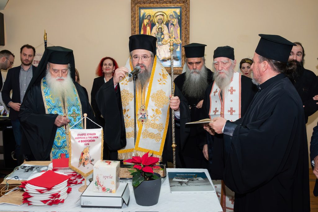 Ακολούθησαν τιμητικές αναφορές στα πρώην μέλη του Δ.Σ. του Συλλόγου: Κα Φρόσω Λάζαρη Μόκκα, πίνακες ζωγραφικής της οποίας στόλισαν και ομόρφυναν τη Λευκαδίτικη Στέγη, Κο Δημήτριο Κτενά πρώτο χοροδιδάσκαλο του Συλλόγου και Κο Σοφοκλή Κατωπόδη. Ακολούθησε η ευλογία της λαδόπιτας από τον Σεβασμιώτατο Μητροπολίτη μας κ.κ. Θεόφιλο που ανελλιπώς παρίσταται στην ετήσια εκδήλωση μας.