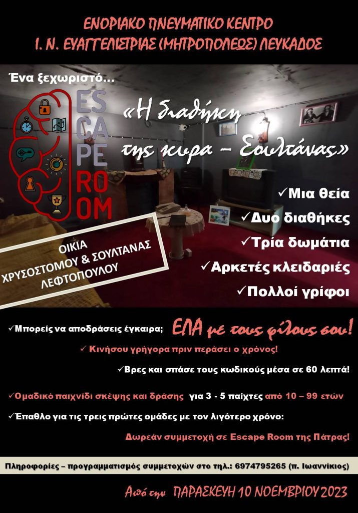 Στο Ενοριακό Πνευματικό Κέντρο του Ι. Ναού Ευαγγελιστρίας (Μητροπόλεως) Λευκάδος δημιουργήσαμε για δεύτερη φορά ένα “Escape Room”, ένα δωμάτιο απόδρασης, σαν διέξοδο ψυχαγωγίας για τα παιδιά μας!