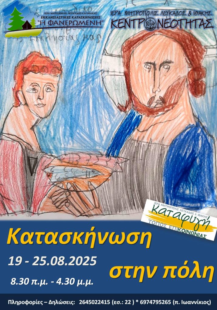 Οι μικροί κατασκηνωτές, ηλικίας Δημοτικού Σχολείου, θα μπορούν να συμμετέχουν για επτά ολόκληρες ημέρες, από την Τρίτη 19 μέχρι και τη Δευτέρα 25 Αυγούστου 2025, σε μια σειρά από κατασκηνωτικές δράσεις που θα υλοποιηθούν μέσα στην πόλη της Λευκάδας, στις κοντινές εξοχές και παραλίες, αλλά και στην Κατασκήνωσή μας, κοντά στο μοναστήρι της Φανερωμένης.