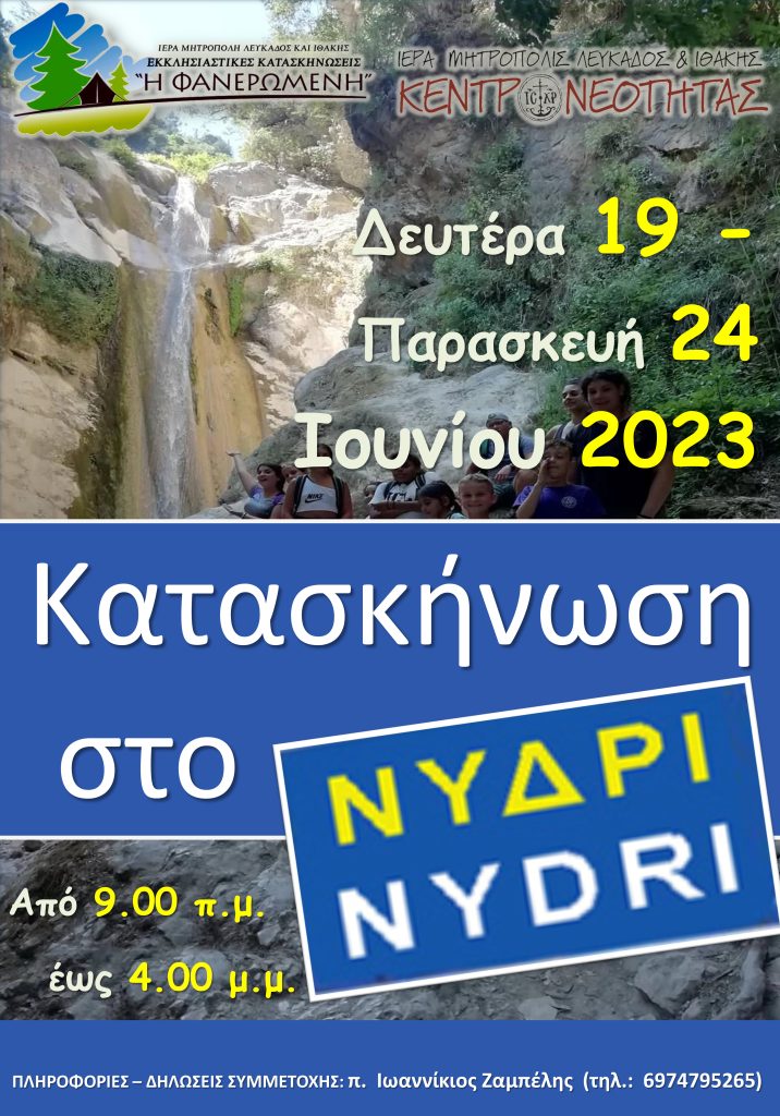Τα καλοκαιρινά ταξίδια των παιδιών μας σιγά –σιγά προγραμματίζονται… Πρώτος σταθμός για τις Εκκλησιαστικές Κατασκηνώσεις της Ι. Μ. Λευκάδος και Ιθάκης, το Νυδρί και η γύρω περιοχή. Αγαπημένος πια προορισμός των παιδιών, η «Κατασκήνωση στο Νυδρί».