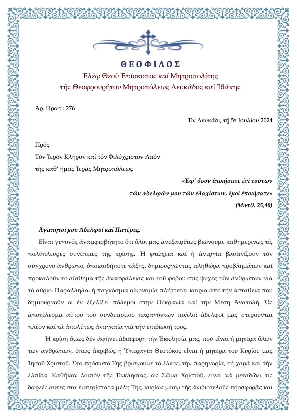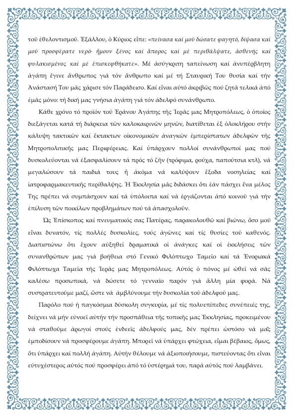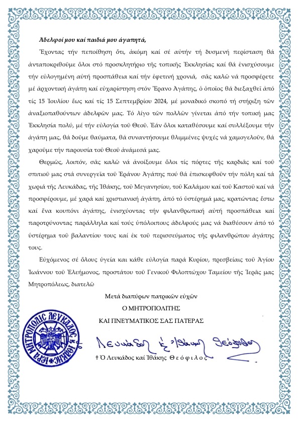 Ακολουθεί Ανακοίνωση – Αφίσα περί του εφετινού Εράνου Αγάπης του Γενικού Φιλοπτώχου Ταμείου της Ιεράς μας Μητροπόλεως.
