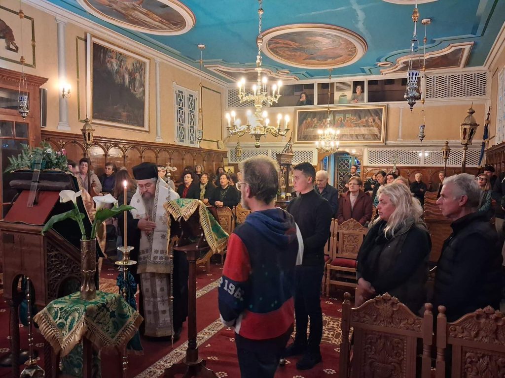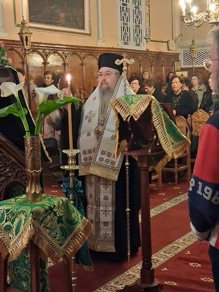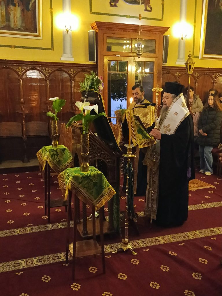 Εψάλη την Παρασκευή, 13 Μαρτίου 2026 και ώρα 7:00 μ.μ. στον Ιερό Ενοριακό Ναό Αγίων Αναργύρων Κοσμά και Δαμιανού Λευκάδος η Ακολουθία των Γ’ Χαιρετισμών στην Υπεραγία Θεοτόκο, χοροστατούντος του Σεβασμιωτάτου Ποιμενάρχου μας κ. Θεοφίλου. Τον Σεβασμιώτατο πλαισίωσε ο εφημέριος της Ενορίας, Αιδεσιμώτατος Πρωτοπρεσβύτερος π. Γρηγόριος Τσαβάλας. Τον θείο λόγο κήρυξε ο Σεβασμιώτατος Μητροπολίτης μας ο οποίος μίλησε μεταξύ άλλων για το βαθύτερο νόημα της Γ᾽ Στάσης των Χαιρετισμών στην Παναγία μας.