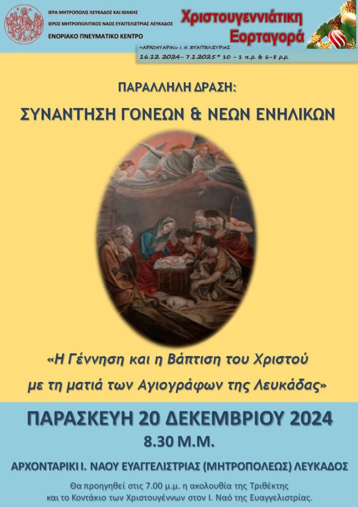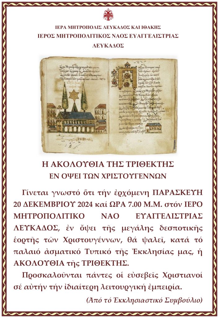 Η Ακολουθία της Τριθέκτης και το Κοντάκιο Χριστουγέννων στην Ευαγγελίστρια – Συνάντηση ενηλίκων στην Εορταγορά.