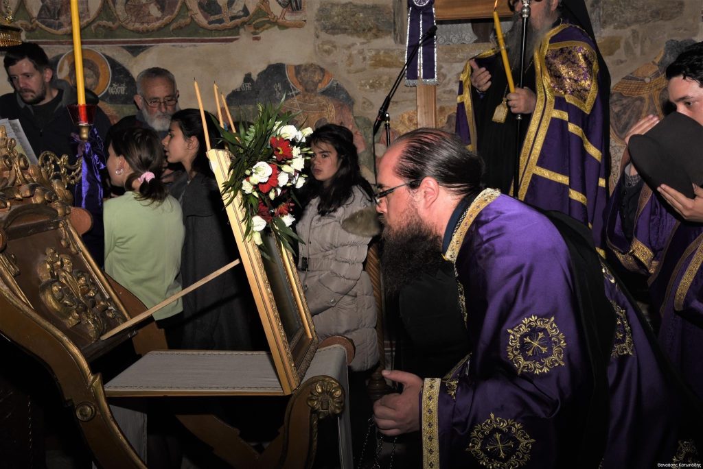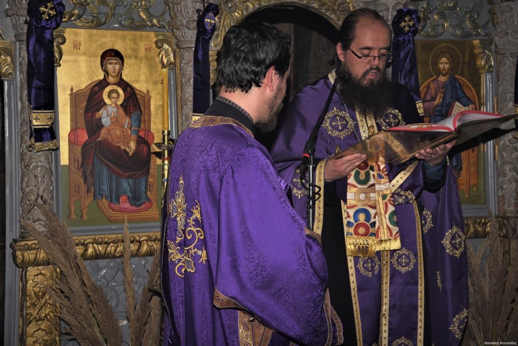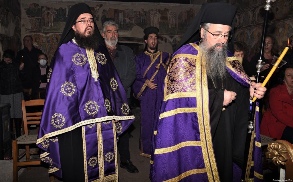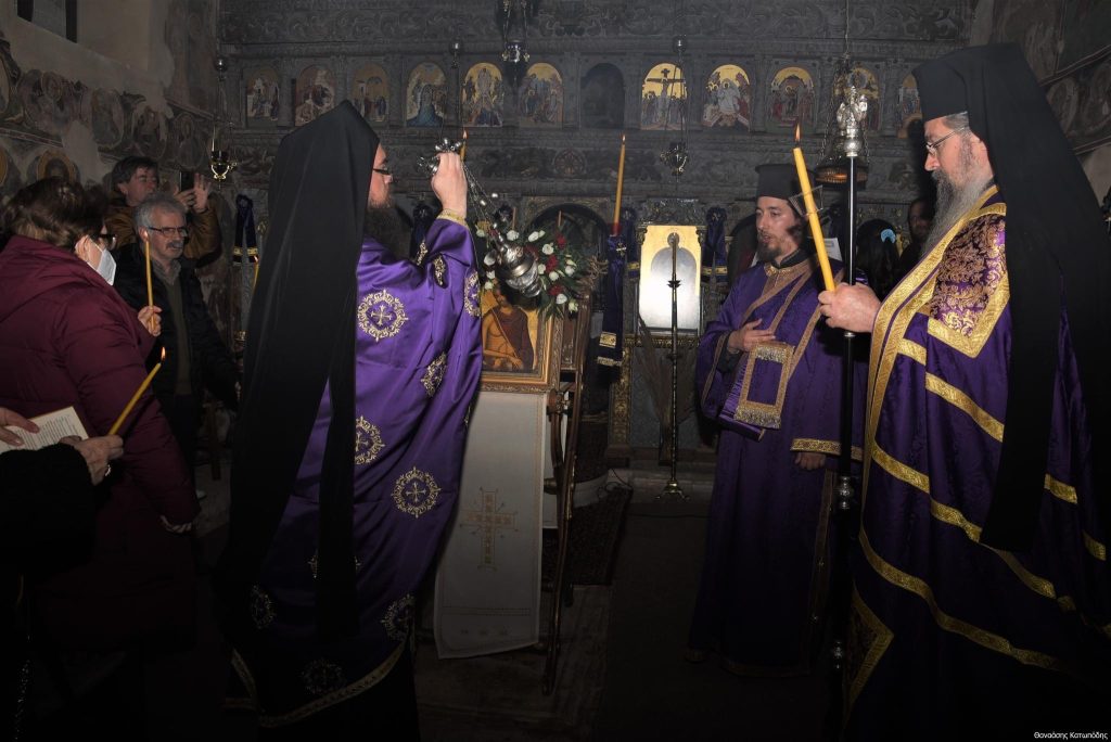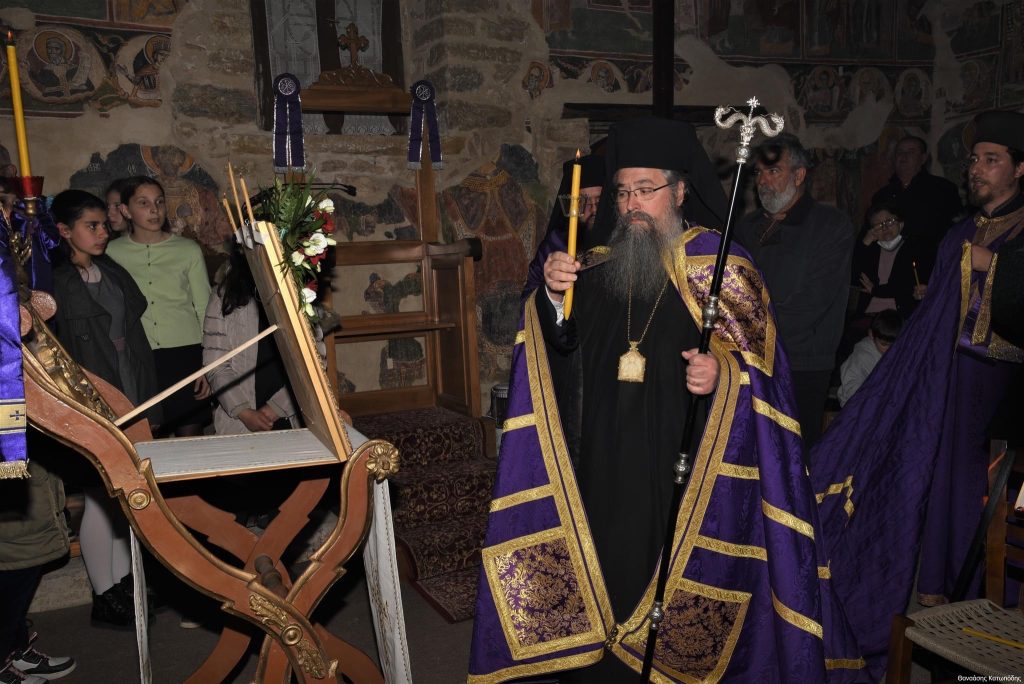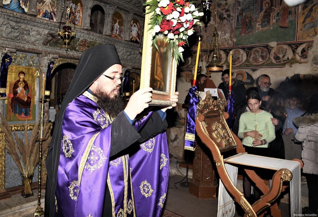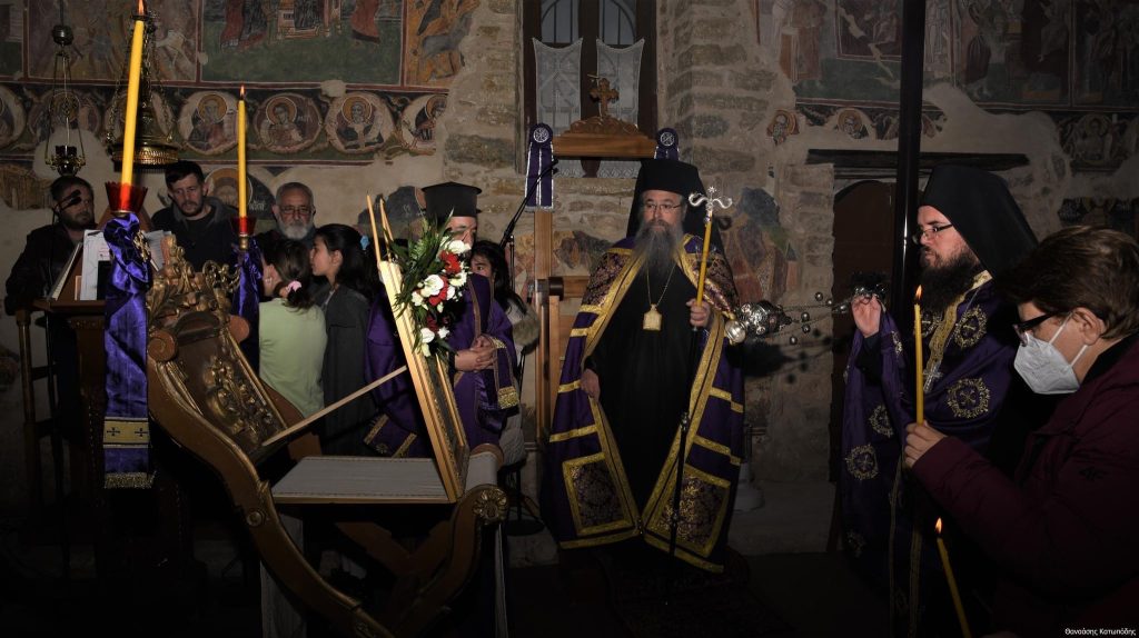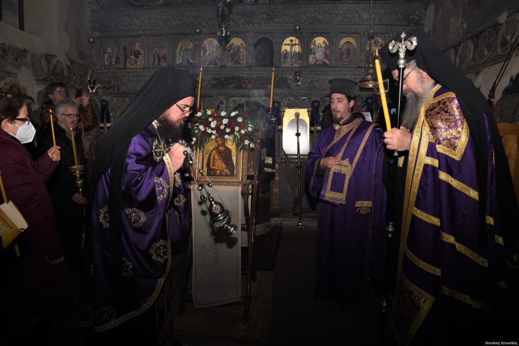 Το απόγευμα της Κυριακής των Βαΐων, 9 Απριλίου 2023 και ώρα 5.30 μ.μ. εψάλη στην Ιερά Μονή Αγίου Ιωάννου Προδρόμου στο Λιβάδι Καρυάς η Ακολουθία του Νυμφίου χοροστατούντος του Σεβασμιωτάτου Μητροπολίτου μας κ. Θεοφίλου, πλαισιωμένου υπό του Ηγουμένου της Ιεράς Μονής Πανοσιολ. Αρχιμανδρίτου π. Χριστοφόρου Αραβανή και του ευλαβεστάτου διακόνου π. Βασιλείου Μαγκανάκη.