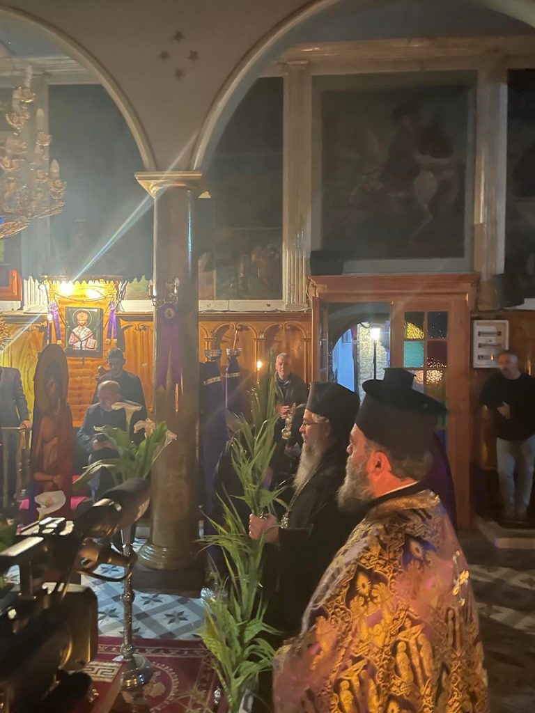 Το απόγευμα της Κυριακής των Βαΐων, 28 Απριλίου 2023 και ώρα 7.45 μ.μ. εψάλη στον Ιερό Ενοριακό Ναό Αγίου Σπυρίδωνος στα Λαζαράτα Λευκάδος η Ακολουθία του Νυμφίου χοροστατούντος του Σεβασμιωτάτου Ποιμενάρχου μας κ. Θεοφίλου, πλαισιωμένου υπό του εφημερίου του Ιερού Ναού Αιδεσιμ. Οικονόμου π. Παναγιώτου Λάζαρη και του ευλαβεστάτου διακόνου π. Βασιλείου Μαγκανάκη. Κατά την διάρκεια της κατανυκτικής Ιεράς ακολουθίας, ο Σεβασμιώτατος Μητροπολίτης μας χειροθέτησε αναγνώστη τον επί σειρά ετών ιεροψάλτη της Ενορίας Λαζαράτων αξιότιμο κ. Στέφανο Σκλαβενίτη. Ο κ. Σκλαβενίτης ευχαρίστησε μεταξύ άλλων τον Σεβασμιώτατο για την τιμή και την αγάπη του όλα αυτά τα χρόνια υποσχόμενος να συνεχίζει να διακονεί με ζήλο το ιερό αναλόγιο της Ενορίας Λαζαράτων και των γύρω Ενοριών.