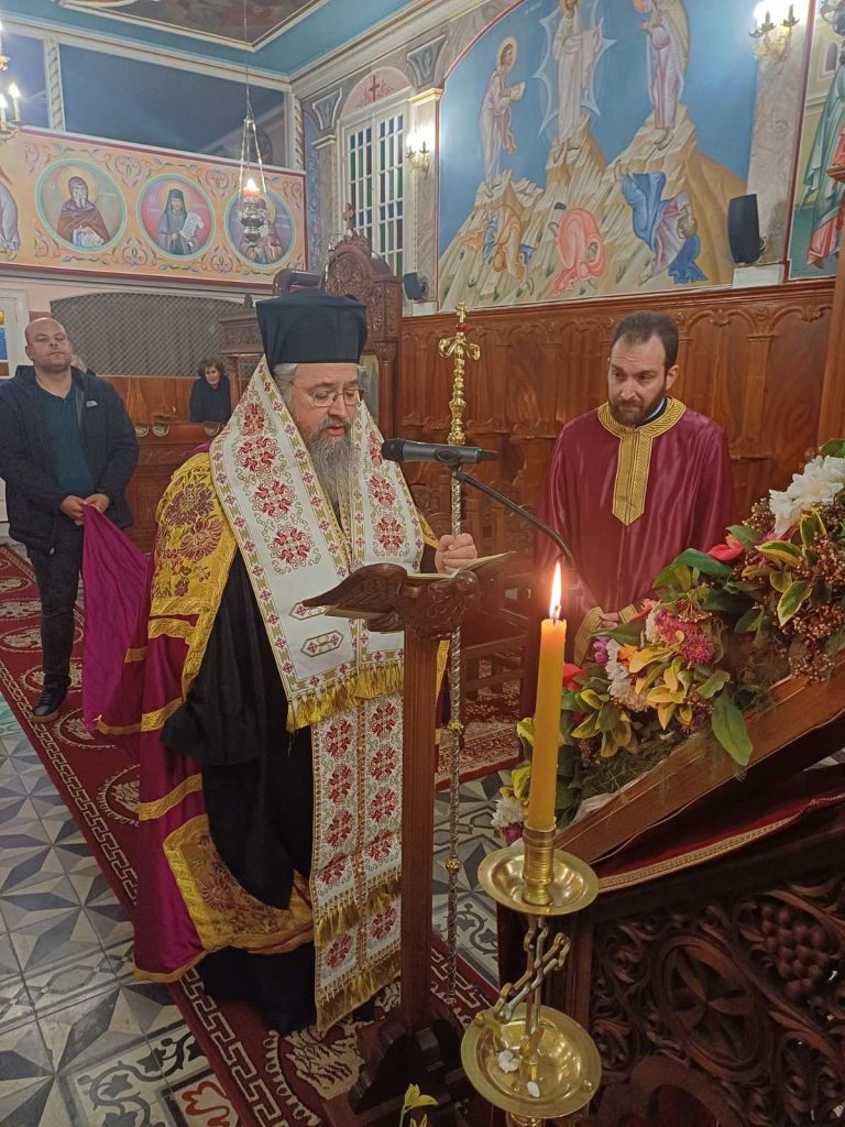 Εψάλη την Παρασκευή, 6 Μαρτίου 2026 και ώρα 6:00 μ.μ. στον Ιερό Ενοριακό Ναό Κοιμήσεως Θεοτόκου στο Καλαμίτσι Λευκάδος η Ακολουθία των Β’ Χαιρετισμών στην Υπεραγία Θεοτόκο, χοροστατούντος του Σεβασμιωτάτου Ποιμενάρχου μας κ. Θεοφίλου. Τον Σεβασμιώτατο πλαισίωσαν ο εφημέριος του Ιερού Ναού, Αιδεσιμολογιώτατος Πρεσβύτερος π. Βασίλειος Αρβανίτης και ο ευλαβέστατος διάκονος π. Καλλίνικος Καρανθίμου. Τον θείο λόγο κήρυξε ο Σεβασμιώτατος Μητροπολίτης μας ο οποίος μίλησε μεταξύ άλλων για το βαθύτερο νόημα της Β᾽ Στάσης των Χαιρετισμών στην Παναγία μας.