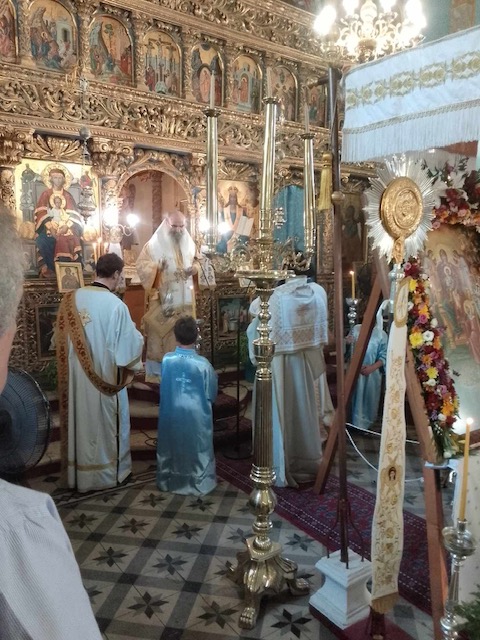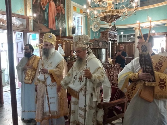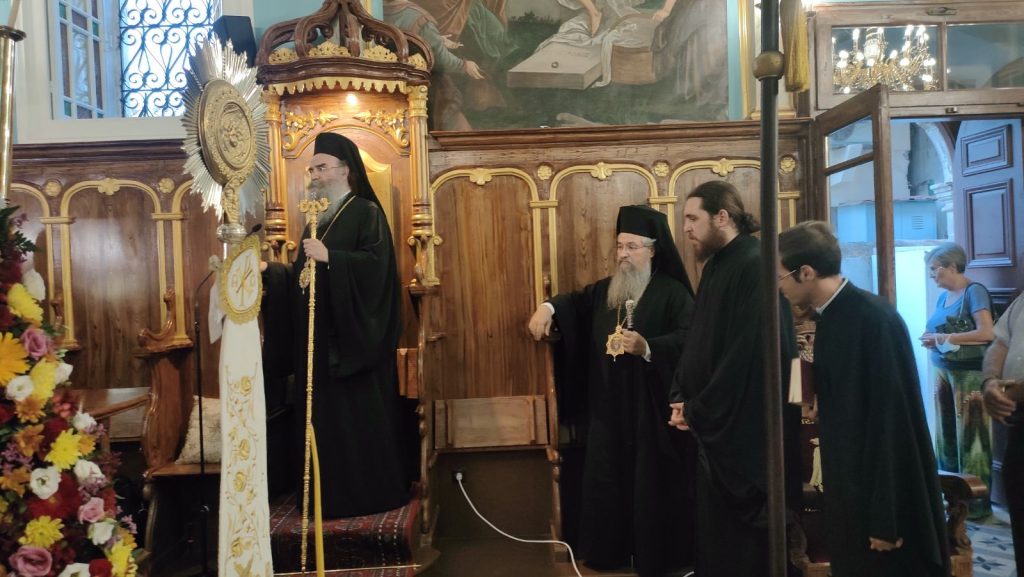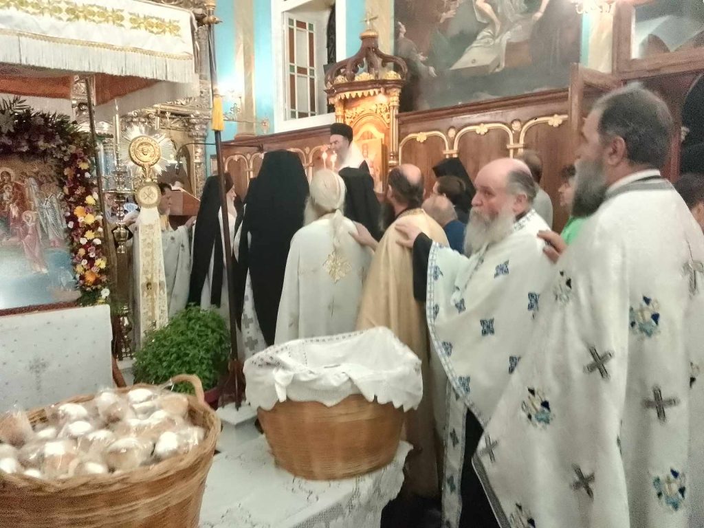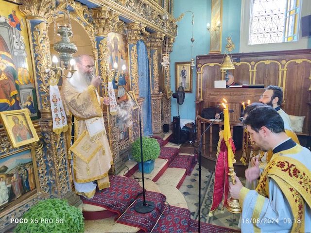 Το πρωί της Κυριακής, 19 Αυγούστου εψάλη η Ακολουθία του Όρθρου και στη συνέχεια τελέσθηκε Πανηγυρική Δισαρχιερατική Θεία Λειτουργία, προεξάρχοντος του Θεοφιλεστάτου Επισκόπου Αμφιπόλεως κ. Χριστοφόρου, συλλειτουργούντος του Σεβασμιωτάτου Ποιμενάρχου μας κ. Θεοφίλου. Τον θείο λόγο κήρυξε ο ο Θεοφιλέστατος Επίσκοπος κ. Χριστοφόρος λαμβάνοντας αφορμή από την Ευαγγελική περικοπή της ημέρας. Ο Σεβασμιωτάτος Ποιμενάρχης μας δεν παρέλειψε μεταξύ άλλων να ευχαριστήσει προσωπικά τον Θεοφιλέστατο κ. Χριστοφόρο για την παρουσία του στην εφετινή Ιερά Πανήγυρη καθώς και τον ευσεβή κλήρο, τις τοπικές αρχές και τον φιλόχριστο λαό για την συμμετοχή τους στις διήμερες λατρευτικές εκδηλώσεις ευχόμενος έτη πολλά, καρποφόρα κι ευλογημένα κατ´άμφω.