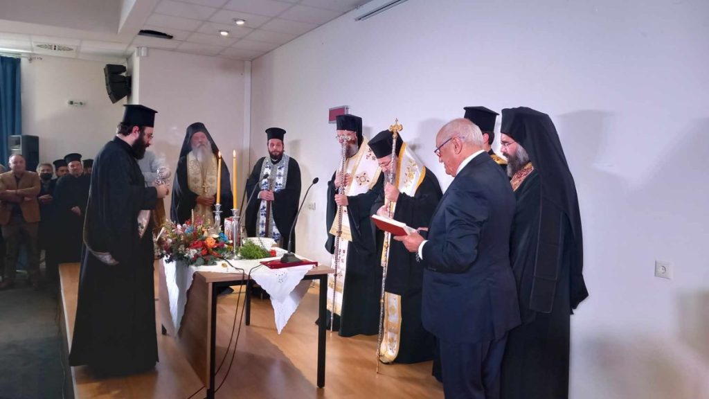 Πραγματοποιήθηκε το μεσημέρι του Σαββάτου 23 Δεκέμβρη 2023, στην κατάμεστη αίθουσα εκδηλώσεων του Διοικητηρίου Λευκάδας, η ορκωμοσία του νέου δημάρχου Λευκάδας κ. Ξενοφώντα Βεργίνη, των μελών του Δημοτικού Συμβουλίου καθώς και των προέδρων και των μελών των Συμβουλίων των κοινοτήτων του Δήμου.Την τελετή του Αγιασμού και της ορκωμοσίας τέλεσαν ο Σεβασμιώτατος Ποιμενάρχης μας Λευκάδος και Ιθάκης κ. Θεόφιλος και ο Θεοφιλέστατος Επίσκοπος Τανάγρας κ. Απόστολος μαζί με κληρικούς της τοπικής μας εκκλησίας.