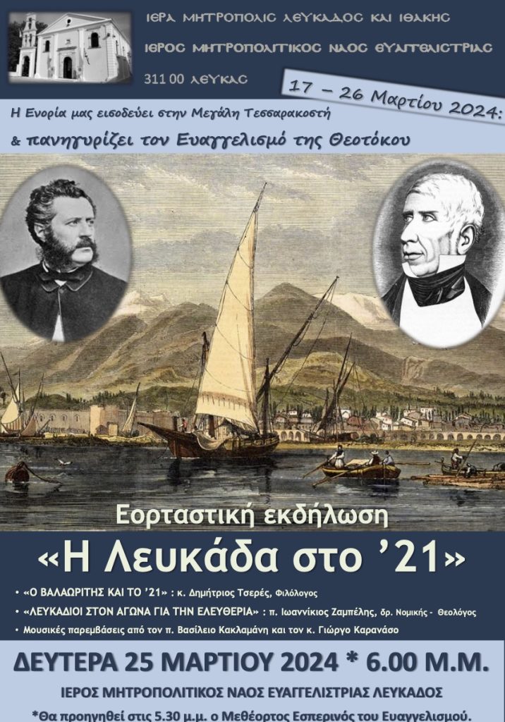 6.00 μ.μ.: ΕΟΡΤΙΑ ΕΚΔΗΛΩΣΗ «Η ΛΕΥΚΑΔΑ ΣΤΟ ‘21»