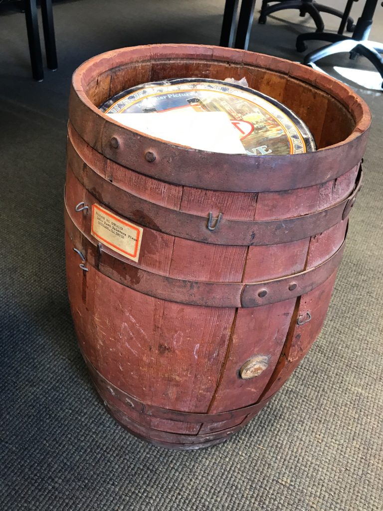 | 1. | Το βαρέλι μέσα στο οποίο ήταν τοποθετημένα τα εννέα κάνιστρα φιλμ με το άγνωστο υλικό από το ταξίδι στο Άγιον Όρος και τα Μετέωρα του 1929. |