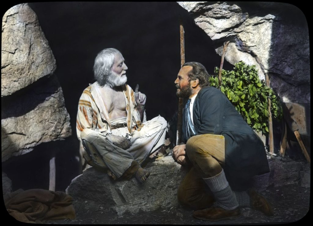 | 5. | Ο αναχωρητής μοναχός Ηλίας συζητά με τον Vladimir Perfilieff έξω από την είσοδο της σπηλιάς του. |