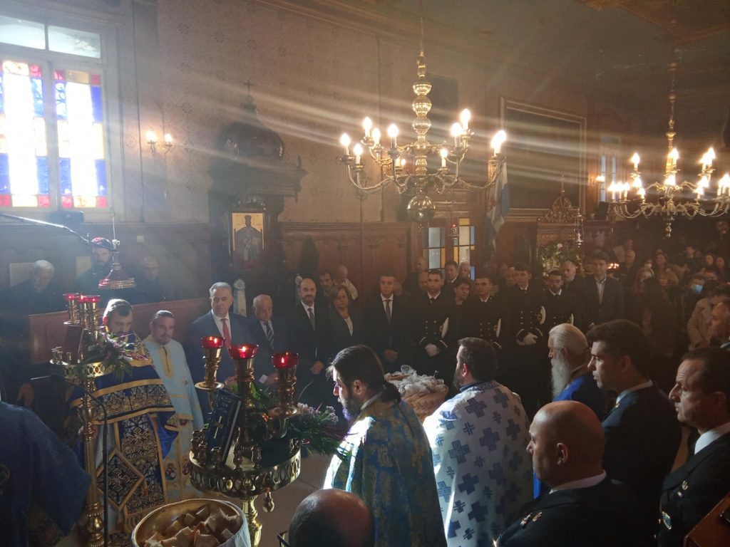 Πριν το πέρας της Πανηγυρικής Αρχιερατικής Θείας Λειτουργίας ο Σεβασμιώτατος Μητροπολίτης μας δεν παρέλειψε να ευχαριστήσει τον κλήρο, τους εκπροσώπους των τοπικών πολιτικών, στρατιωτικών και πολιτιστικών φορέων και τον λαό της Λευκάδας για την συμμετοχή τους στις εορταστικές εκδηλώσεις της μνήμης του Αγίου Νικολάου και μοίρασε το αντίδωρο στο ευσεβές εκκλησίασμα. Στη συνέχεια και ώρα 10.30 π.μ. χοροστάτησε στην καθιερωμένη Δοξολογία υπέρ ενισχύσεως του Λιμενικού Σώματος, του Πολεμικού και Εμπορικού Ναυτικού και των εν θαλάσσαις καλώς πλεόντων αδελφών μας.