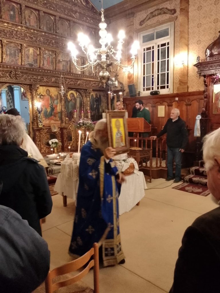 Το απόγευμα της Πέμπτης και ώρα 6:00 μ.μ. εψάλη ο Μέγας Πανηγυρικός Εσπερινός μετ’ αρτοκλασίας. Τον θείο λόγο κήρυξε ο Καθηγούμενος της Ιεράς Μονής Υπεραγίας Θεοτόκου Φανερωμένης Λευκάδος, Πανοσιολογιώτατος Αρχιμανδρίτης π. Νικηφόρος Ασπρογέρακας ο οποίος αναφέρθηκε μεταξύ άλλων στα χαρίσματα του μεγάλου Ιεράρχου της Εκκλησίας μας Αγίου Νικολάου, Αρχιεπισκόπου Μύρων της Λυκίας του θαυματουργού.