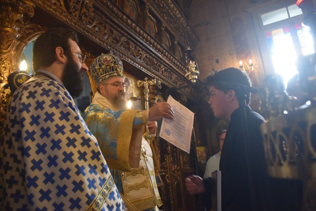 Την κυριώνυμο ημέρα της εορτής, Τετάρτη, 6 Δεκεμβρίου εψάλη ο Όρθρος και στη συνέχεια τελέσθηκε η Πανηγυρική Αρχιερατική Θεία Λειτουργία μετ᾽αρτοκλασίας προεξάρχοντος του Σεβασμιωτάτου Ποιμενάρχου μας κ. Θεοφίλου. Το θείο λόγο κήρυξε ο Ιεροκήρυκας της Ιεράς μας Μητροπόλεως Πανοσιολογιώτατος Αρχιμανδρίτης π. Ιωαννίκιος Ζαμπέλης αναφερόμενος μεταξύ άλλων στο πρόσωπο και τις αρετές του εορταζόμενου Αγίου Νικολάου. Κατά την διάρκεια της Πανηγυρικής Αρχιερατικής Θείας Λειτουργίας ο Σεβασμιώτατος Μητροπολίτης μας χειροθέτησε αναγνώστη τον Ζώη – Μάριο Φέτση, ένα νέο παιδί, μαθητή Λυκείου που συμμετέχει ενεργά στην μυστηριακή ζωή και τις Νεανικές Συντροφιές της Ενορίας του Αγίου Νικολάου. Στη συνέχεια ευλόγησε τις αρτοκλασίες του Λιμενικού Σώματος της πόλεως Λευκάδος και του Λιμενικού Σταθμού Νυδριού.