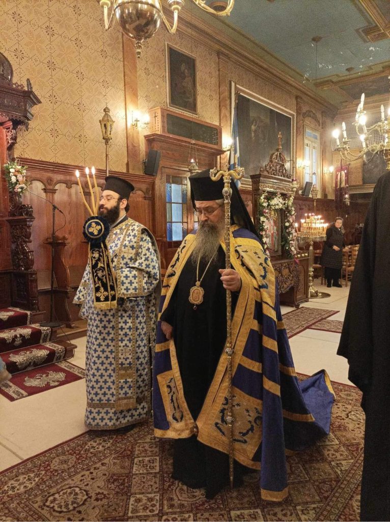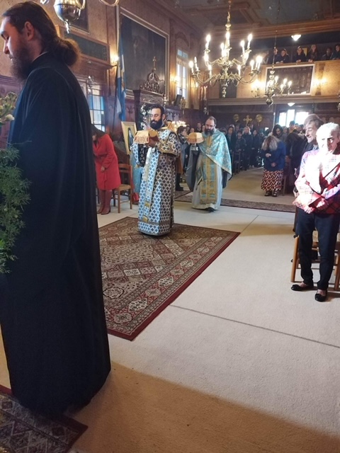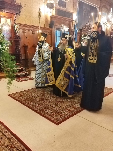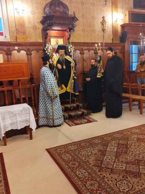 Το απόγευμα της Τρίτης, 5 Δεκεμβρίου και ώρα 6:00 μ.μ. εψάλη ο Μέγας Πανηγυρικός Εσπερινός μετ’ αρτοκλασίας. Τον θείο λόγο κήρυξε ο Αιδεσιμολογιώτατος Πρεσβύτερος π. Βασίλειος Αρβανίτης, εφημέριος Ιερού Ενοριακού Ναού Κοιμήσεως Θεοτόκου Καλαμιτσίου Λευκάδος ο οποίος αναφέρθηκε μεταξύ άλλων στα χαρίσματα του μεγάλου Ιεράρχου της Εκκλησίας μας Αγίου Νικολάου, Αρχιεπισκόπου Μύρων της Λυκίας του θαυματουργού.