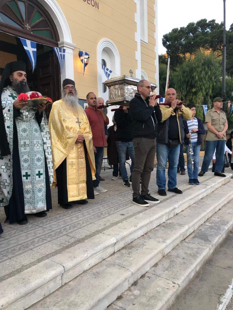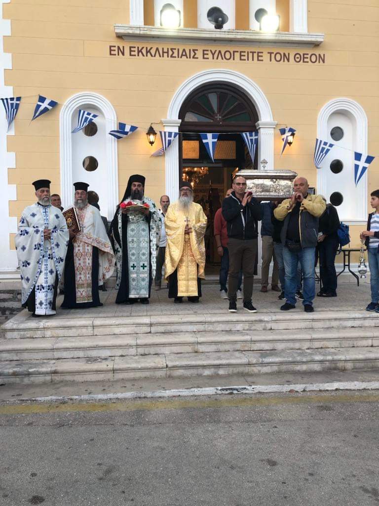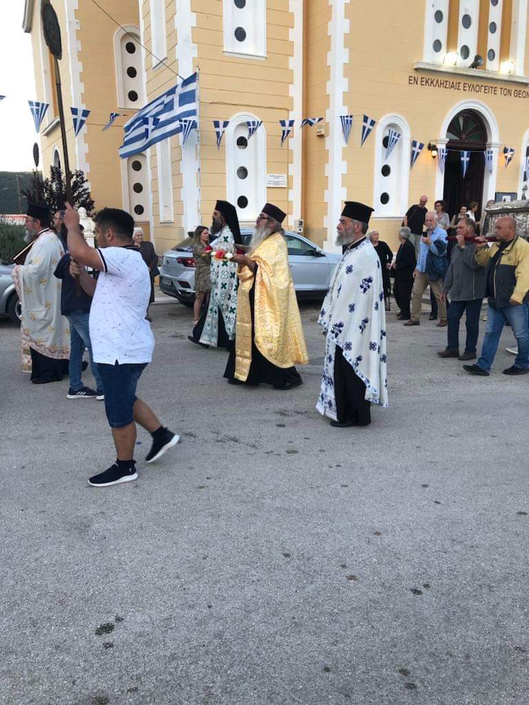 Την παραμονή της εορτής και ώρα 7:00 μ.μ. εψάλη Μέγας Πανηγυρικός Εσπερινός μετ᾽αρτοκλασίας. Τον Σεβασμιώτατο Ποιμενάρχη μας κ. Θεόφιλο εκπροσώπησε ο Αρχιερατικός Επίτροπος Λευκάδος, Πανοσιολογιώτατος Αρχιμανδρίτης π. Σπυρίδων Μπούρης, ο οποίος και κήρυξε τον θείο λόγο κατά το διήμερο των λατρευτικών εκδηλώσεων. Τόσο στην Ακολουθία του Πανηγυρικού Εσπερινού, όσο και την κυριώνυμο ημέρα, κατά την Πανηγυρική Θεία Λειτουργία έλαβαν μέρος ο Αιδεσιμ. Πρωτοπρεσβύτερος π. Χριστόδουλος Τριλίβας, Αρχιερατικός Επίτροπος Ιθάκης, ο εφημέριος του Ιερού Ενοριακού Ναού Κοιμήσεως Θεοτόκου Βαθέος Ιθάκης, Αιδεσιμολογιώτατος Πρωτοπρεσβύτερος π. Θεοδόσιος Δενδρινός και ο εφημέριος του Ιερού Ναού Αιδεσιμολογιώτατος Πρωτοπρεσβύτερος π. Παναγιώτης Βαρδουνιώτης. Το ιερό αναλόγιο διηκόνησε ο εφημέριος Ιερού Ενοριακού Ναού Τιμίου Προδρόμου Κιονίου Ιθάκης, Αιδεσιμ. Πρωτοπρεσβύτερος π. Χαράλαμπος Κουτσουβέλης πλαισιωμένος από τους ιεροψάλτες της νήσου. Πριν το πέρας του Πανηγυρικού Εσπερινού ευλογήθηκαν οι άρτοι και τα κόλλυβα του εορταζόμενου Αγίου και στη συνέχεια έλαβε χώρα η λιτάνευση των ιερών λειψάνων του Οσίου Ιωακείμ στην κεντρική πλατεία του χωριού με την συμμετοχή του κλήρου, των αρχών, του λαού και της Φιλαρμονικής του νησιού.